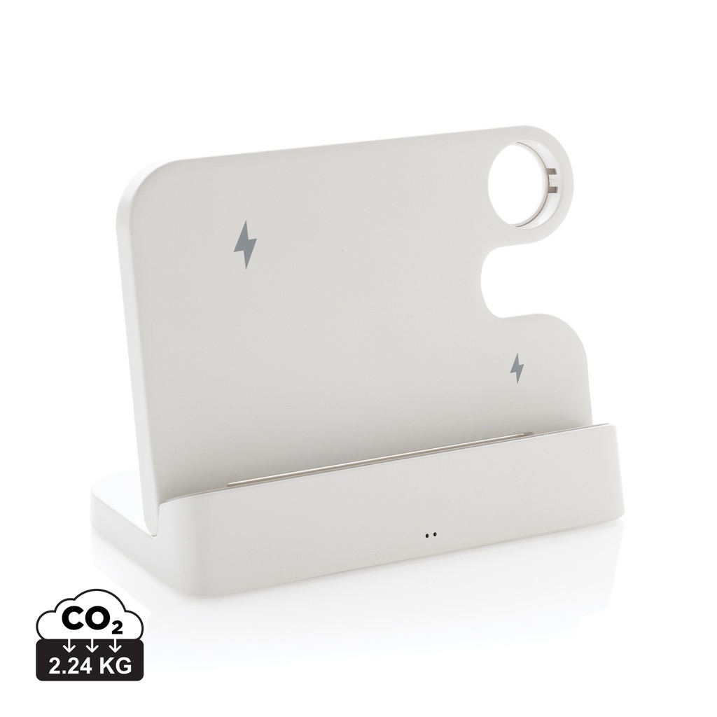 Kokkupandav disain laadimisalus 15 W juhtmevaba laadijaga, mis on valmistatud taaskasutatud ABS-ist. Teise 5 W juhtmevaba laadijaga väiksemate esemete (nt kõrvaklapid) laadimiseks. iWatchi pesaga, mis sobib iWatchi ametliku laadimiskaabliga. Tagaküljel on 5V/1A USB A ja USB C väljundport esemete laadimiseks kaabli abil. Ränist otstega põhjas, et vältida libisemist, ja silikoonist pehmendusega aluse külge, et telefon oleks ideaalses korras. Taaskasutatud kogusisaldus: 80% eseme kogukaalust. RCS-sertifikaat tagab taaskasutatud materjalide täielikult sertifitseeritud tarneahela. Pakitud FSC® pakendisse. PVC vaba. Kaasa arvatud RCS-i taaskasutatud TPE 120 cm USB A–USB C laadimiskaabel. Pakitud FSC® pakendisse. PVC vaba