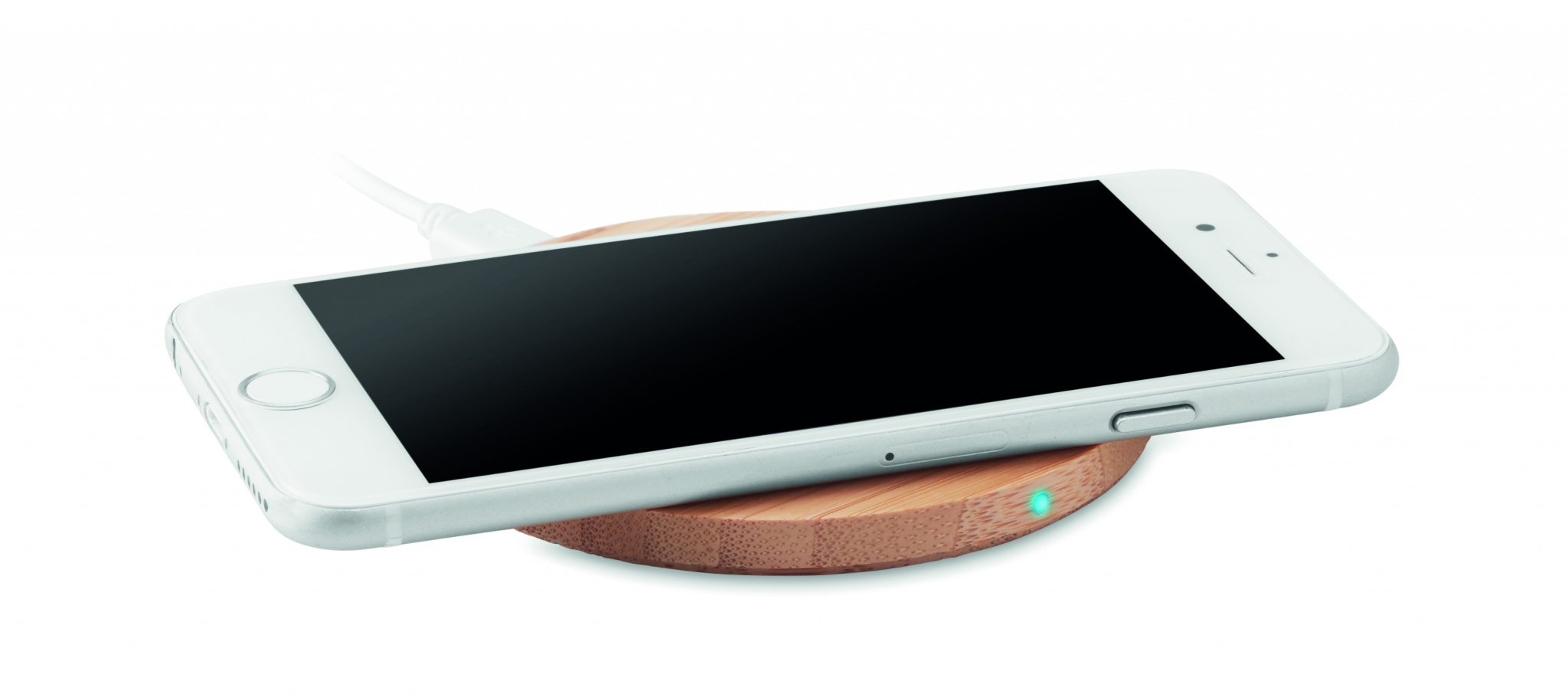 Logo trade reklaamtoote pilt: Juhtmeta bambusest laadija 10W RUNDO +