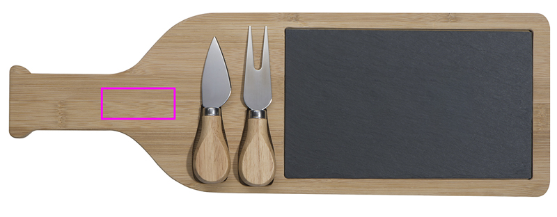 Bambusest juustuplaat veinipudeli kujul, millel on sissepandava kiltkivi, juustunoa ja juustukahvel. Graveerime teie logo tahvlile.