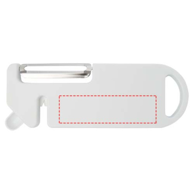 See mitmeotstarbeline köögiriist ühendab endas neli olulist funktsiooni ühes kompaktses disainis. Taaskasutatud plastist valmistatud tööriistal on koorija, pudeliavaja, noateritaja ja terav ots kartuliplekkide eemaldamiseks.