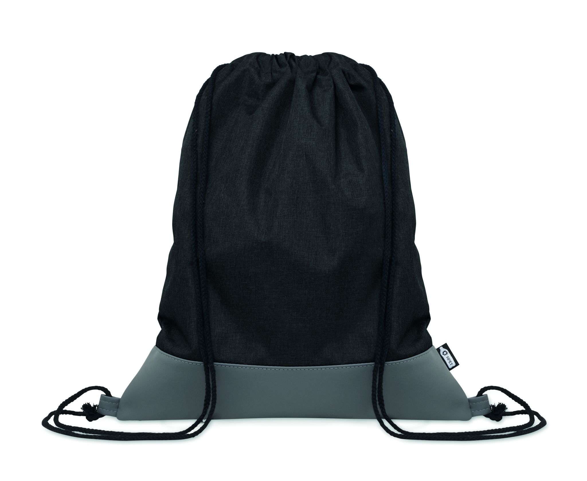 Must pingutusnööriga kott 2-toonist 300D RPET polüestrist pehme PU detaili ja puuvillase nööriga.