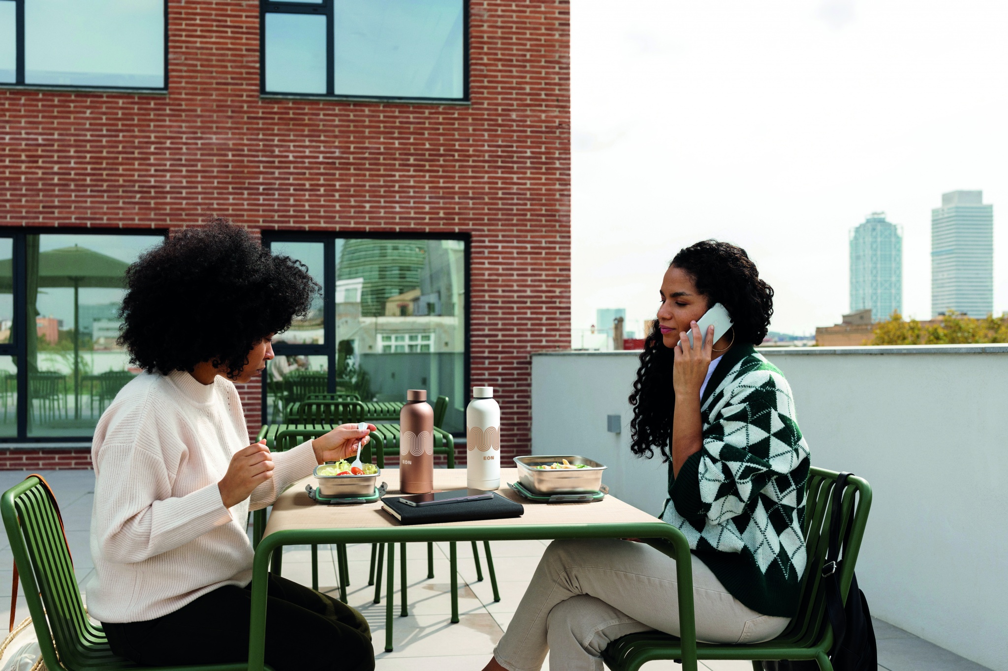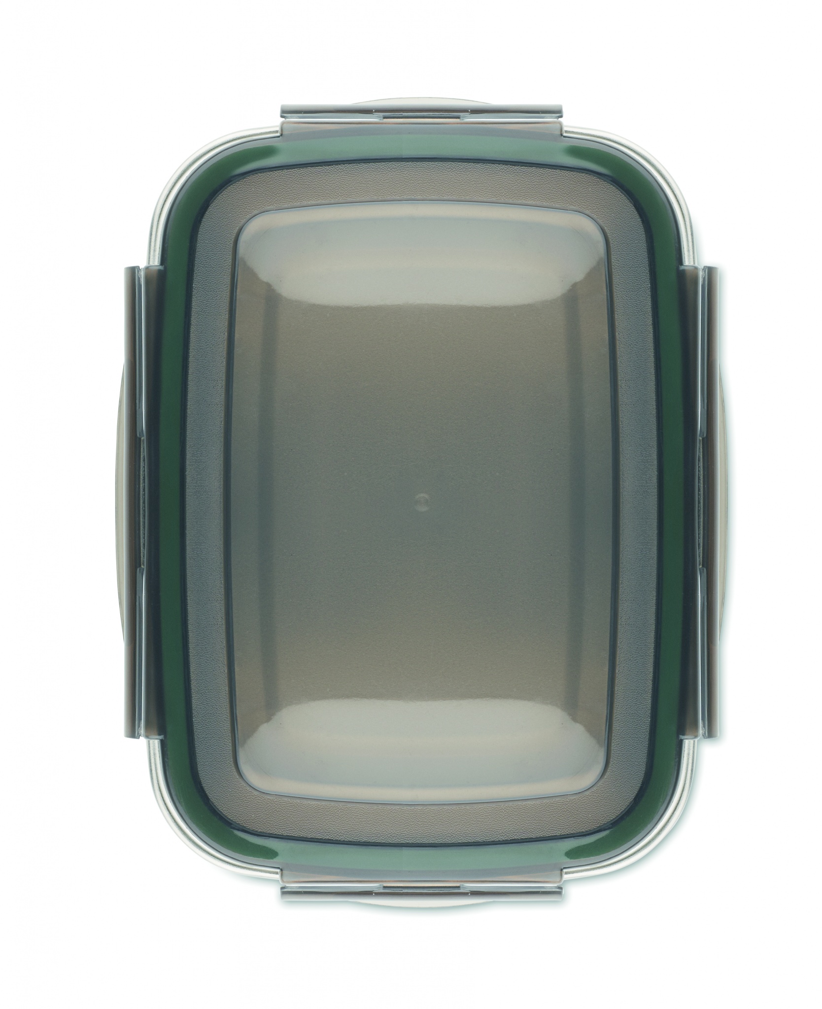 Taaskasutatud roostevabast terasest lõunasöögikarp taaskasutatud PP kaanega ja 4 küljekinnitusega. Mahutavus: 850 ml.