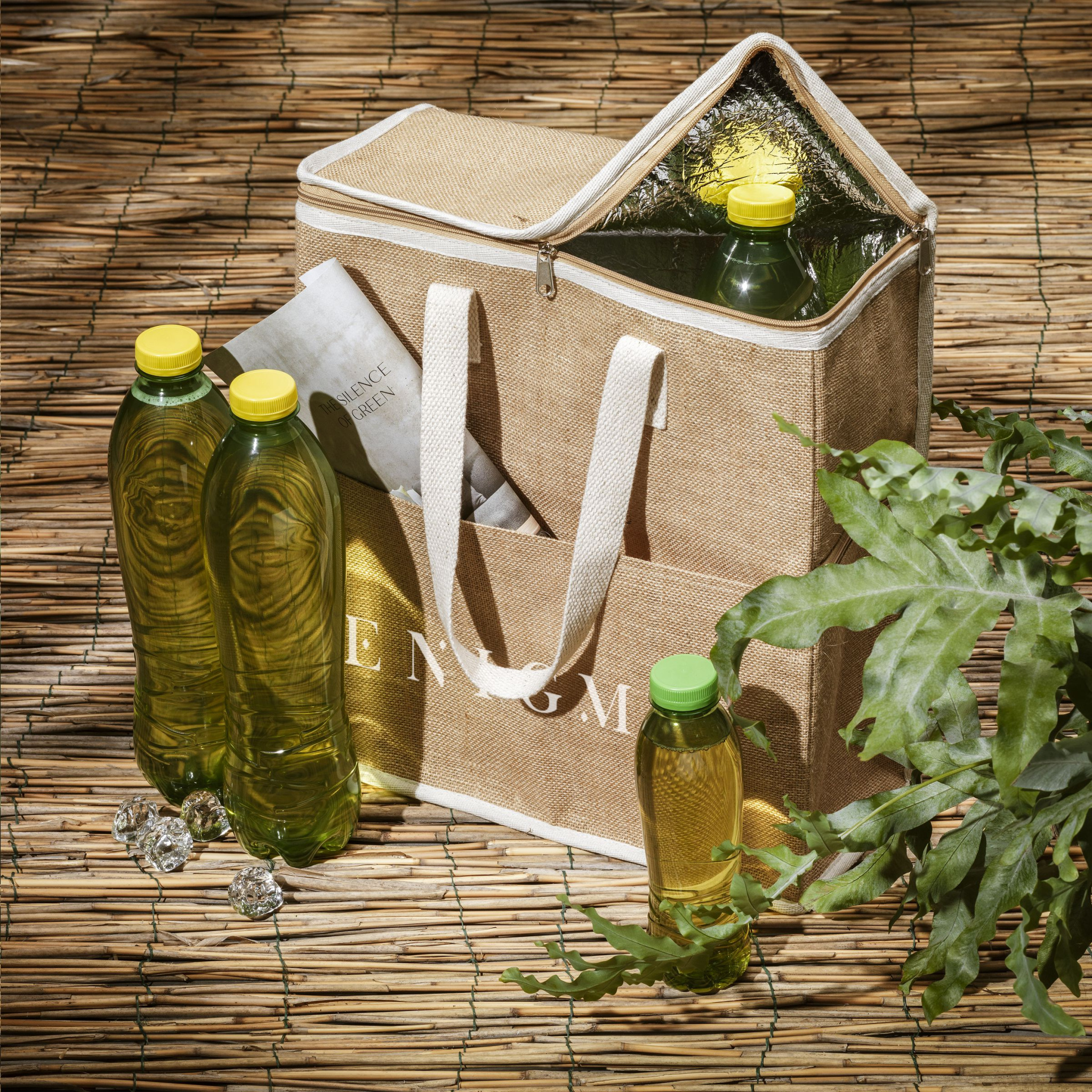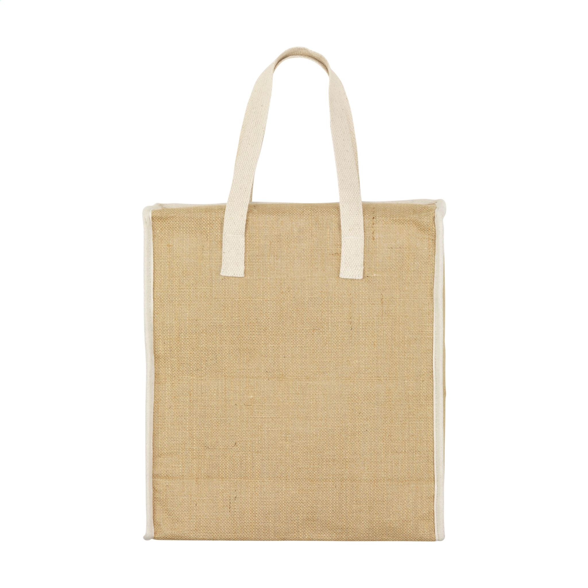 Vau! See külmakott on valmistatud tugevast džuudist ja puuvillasest materjalist, mille sisemus on isoleeritud. Selles väga mahukas külmakotis hoia oma sööke ja jooke päeva jooksul jahedana. Sellel kotil on tõmblukk ja esitasku, mis pakuvad täiendavat hoiuruumi. Need lisataskud on käepärased selliste asjade hoidmiseks, mida ei vaja jahutada, näiteks telefoni või rahakoti. Tarnitakse kootud puuvillase käepidemetega. Mahutavus ca. 24 liitrit.