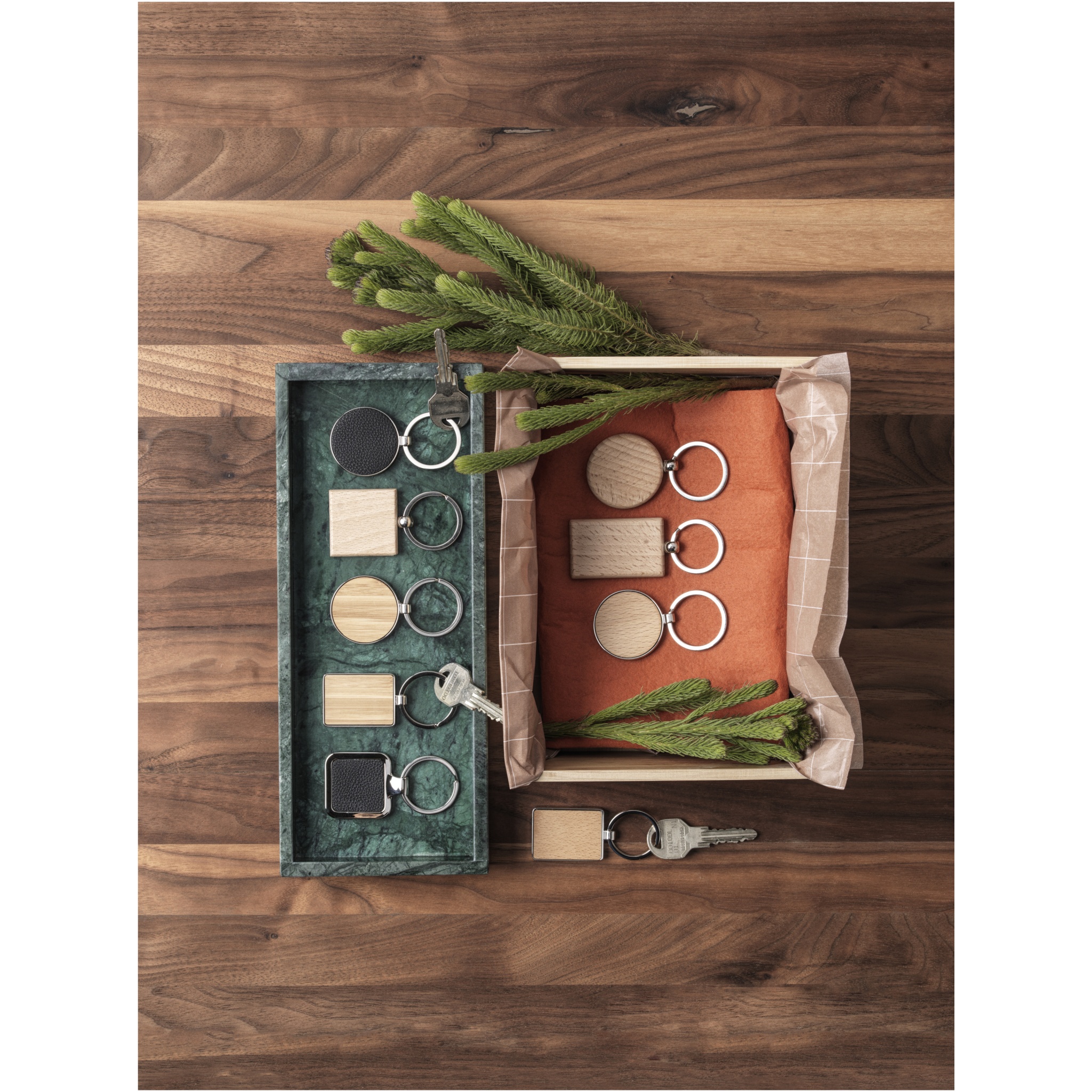Kvaliteetne ristkülikukujuline bambusest võtmehoidja tsingisulamist metallist korpusega, mis tarnitakse pruuni taaskasutatud jõupaberist ümbrikusse. Võtmehoidja suurus on 5 x 3 cm. Loodud lasergraveerimiseks.