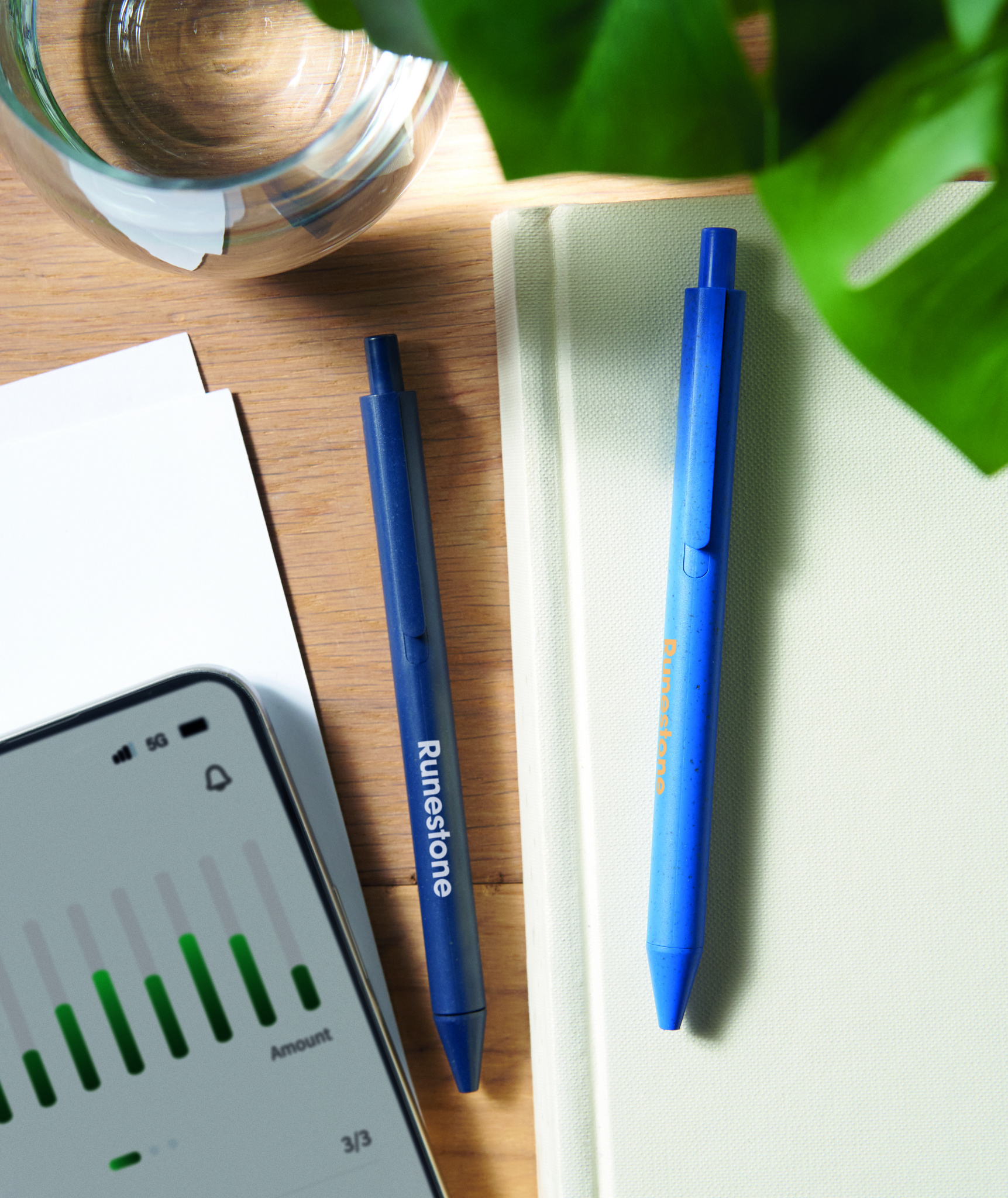 Nupuga pastapliiats 50% nisukõrrest ja 50% ABS materjalist (sinine tint).