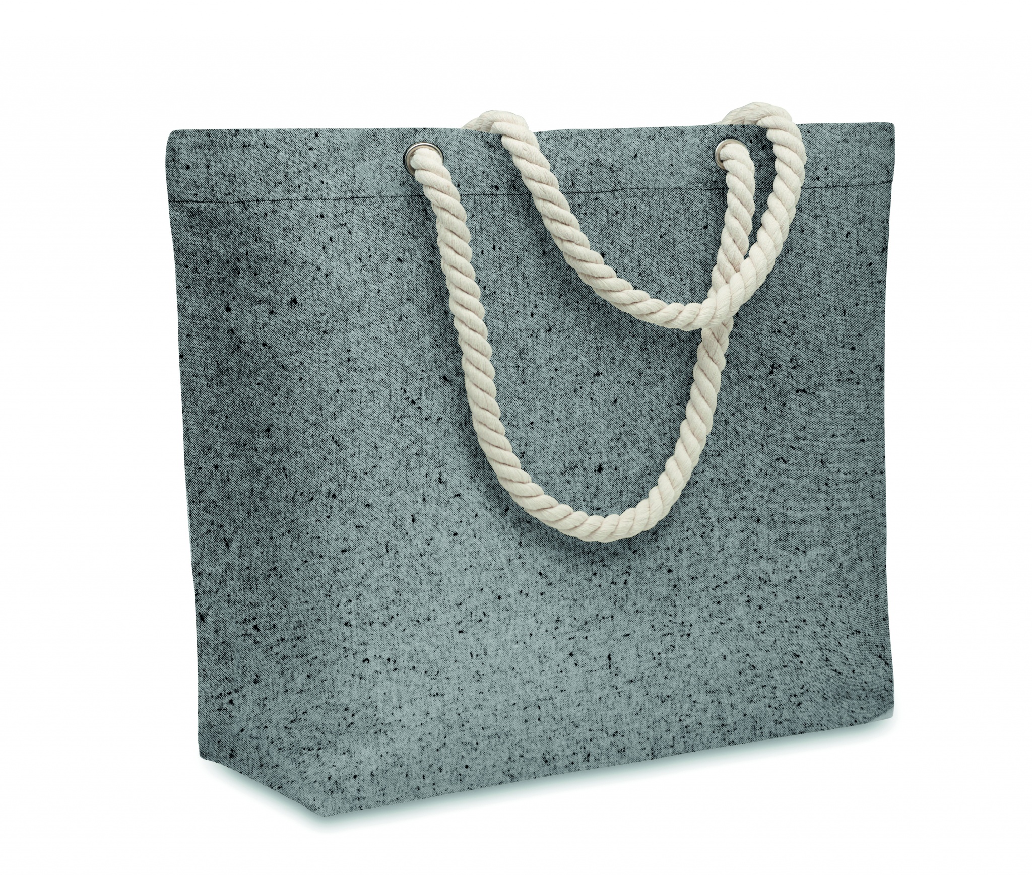 Ranna- või ostukott taaskasutatud puuvillast (80% taaskasutatud puuvill, 20% tavaline puuvill) nööri käepidemetega. 220 gr/m².