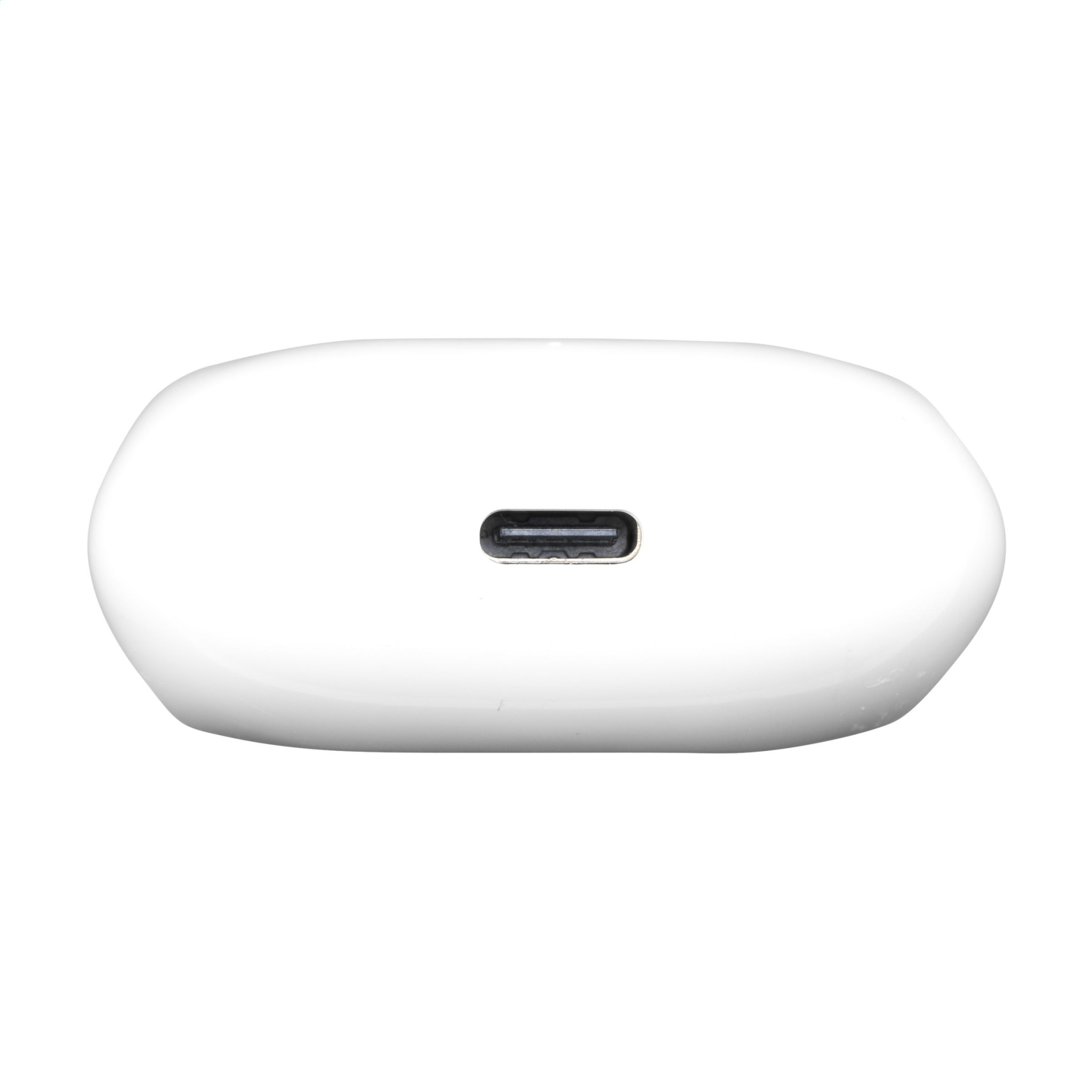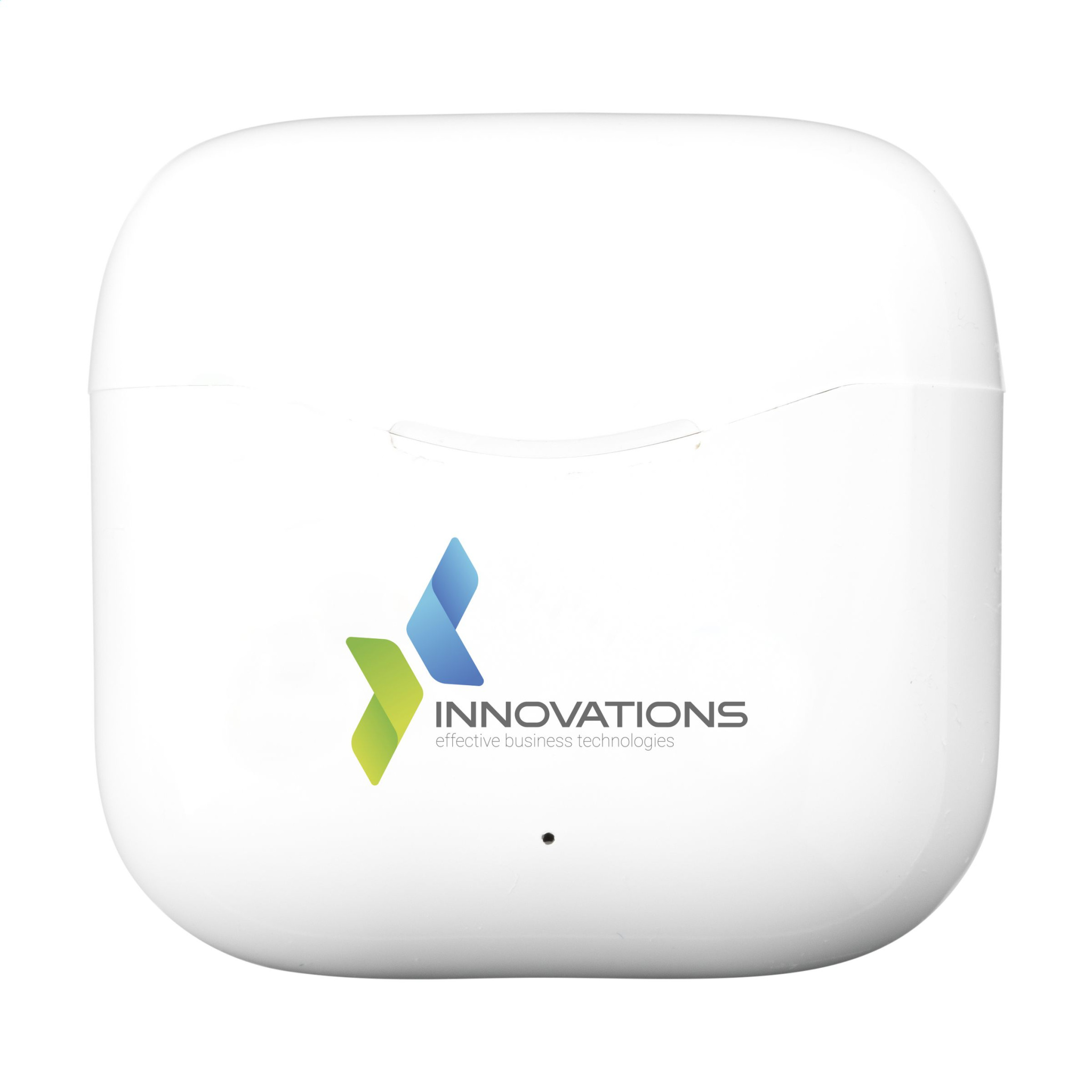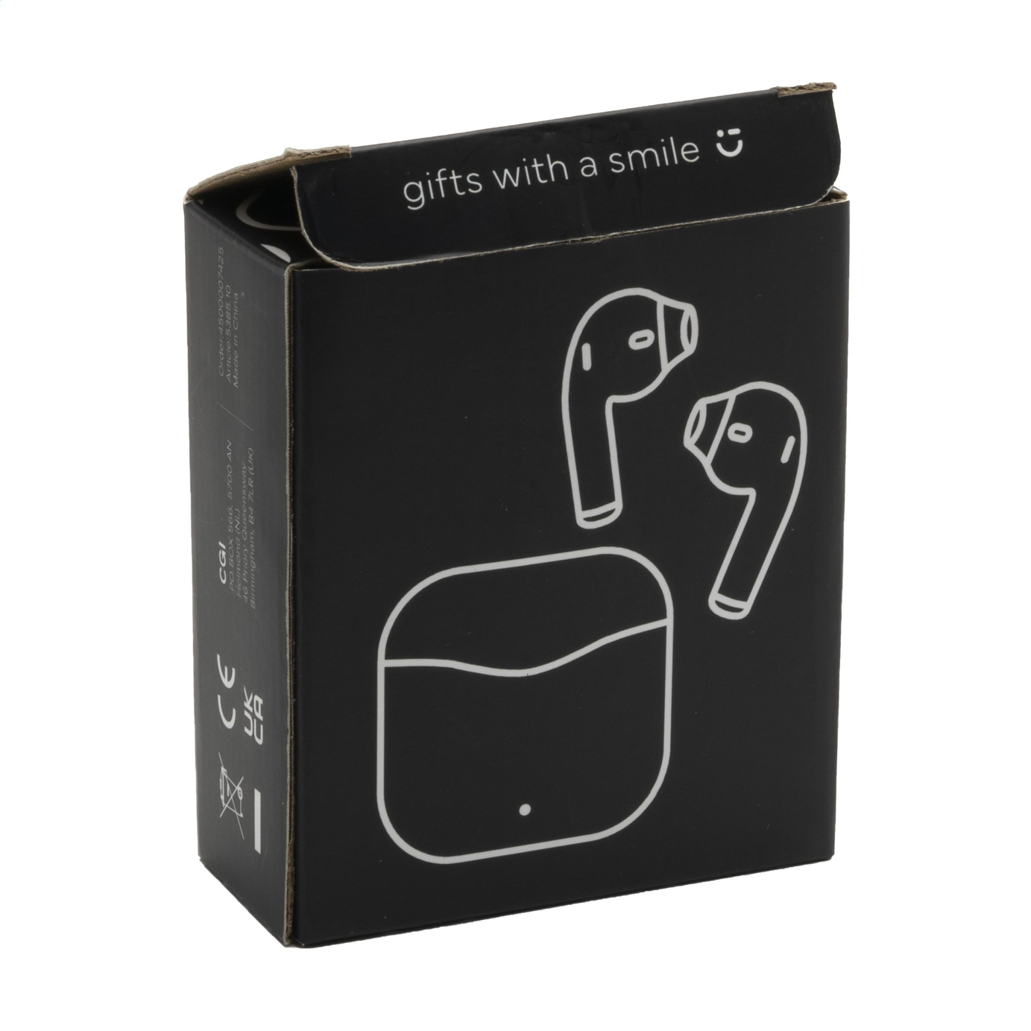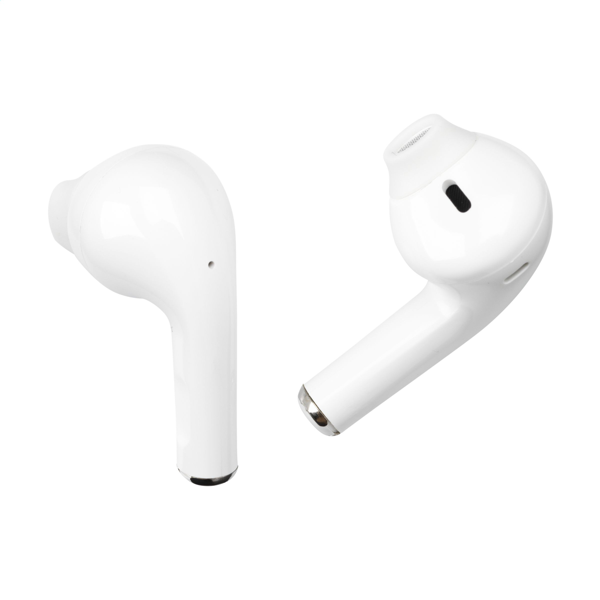 Uue põlvkonna tõelised juhtmevabad kõrvaklapid laadimisümbrises, mis on valmistatud taaskasutatud ABS-ist. Need kõrvaklapid kasutavad sujuva ühenduse tagamiseks BT 5.1. Kõrvaklappidel on 30 mAh aku ja 200 mAh laadimisümbrisega laadimiseks kulub vaid üks tund. Suurepärane heli taasesitus ja reguleeritav helitugevus on ühendatud automaatse sidumise tehnoloogiaga, mis tagab automaatse sidumise ja puutetundliku juhtimise. Helistage lihtsalt käed-vabad telefonikõnesid ja nautige muusikat ilma piiravate kaabliteta. Ühenduse ulatus on 10 meetrit. Kaasas PVC-vaba C-tüüpi laadimiskaabel ja kasutusjuhend. RCS-sertifikaadiga. Taaskasutatud materjal kokku: 62,5%. Iga ese on eraldi karbis.