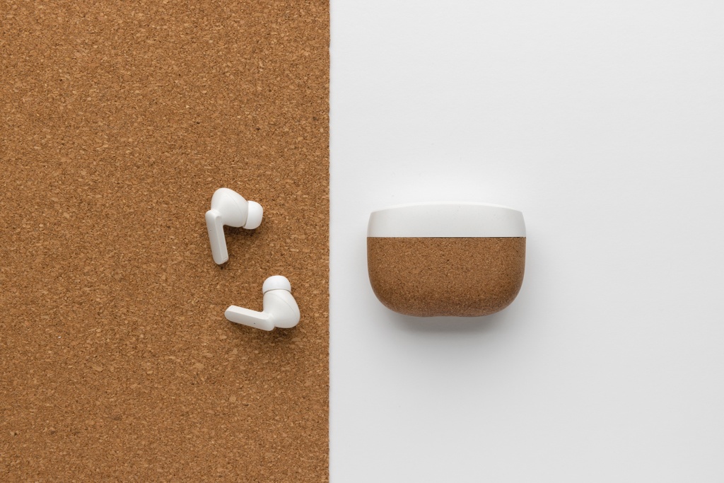 Logo trade ärikingitused foto: Oregoni RCS taaskasutatud plastikust ja korgist TWS kõrvaklapid