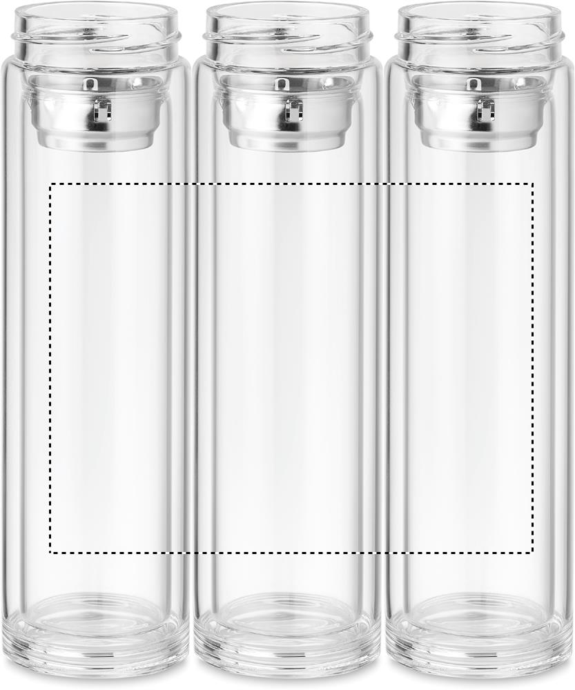 Kaheseinaline boorsilikaatklaasist pudel. Selle kaane ülaosas on puutetundlik LED-termomeeter ja sees olev tee infusioon. Kaasas 1 vahetatav CR2032 patarei. Lekkekindel. Mahutavus: 390 ml. Lekkevaba.