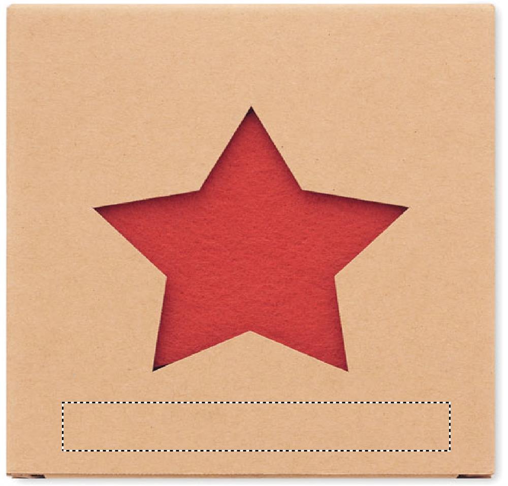 4 tähekujulise RPET-vildist rannaaluse komplekt, mis on pakitud kraftkarbis.