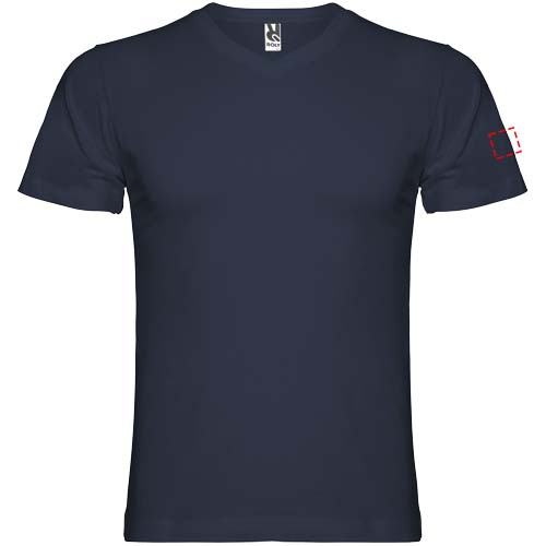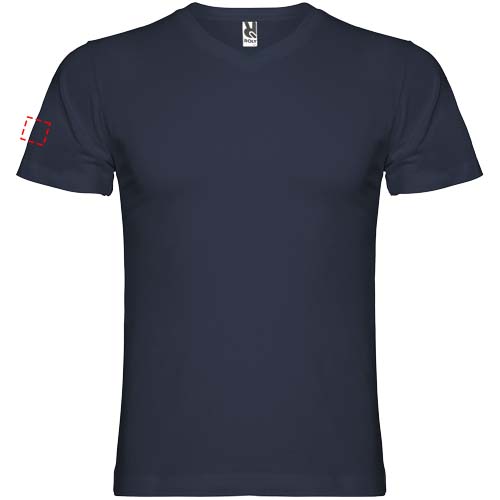 Torujas lühikeste varrukatega t-särk 2-kihilise v-kaelusega. Tugevdatud kaetud õmblused kraes ja õlgades. Eemaldatav etikett. Modell on 190 cm pikk ja kannab suurust L.