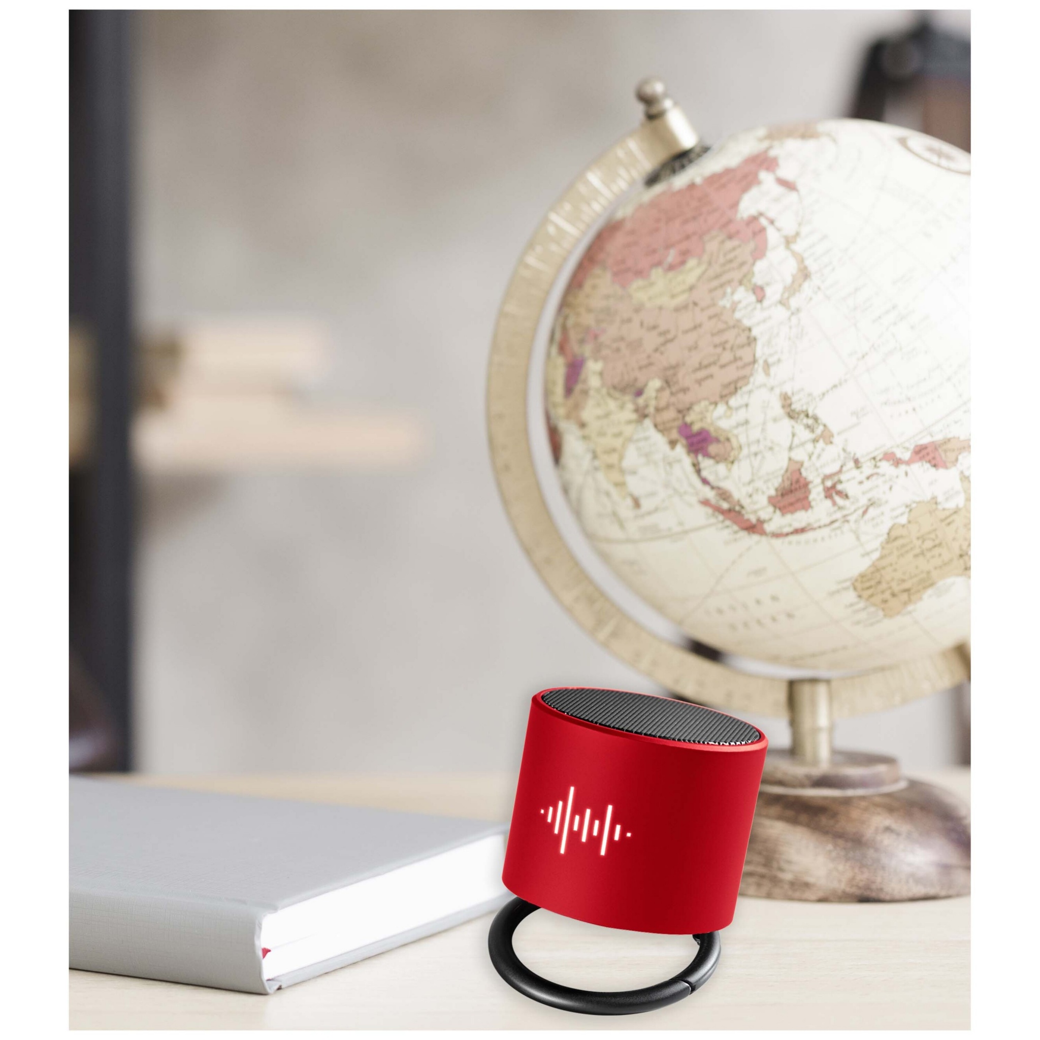 Juhtmeta 3W valgustusega logoga Bluetooth® kõlar antibakteriaalse töötlusega. Topeltheliväljund tagab sellises suuruses kõlari võrratu helikvaliteeti. Helinat saab kallutada, et suunata heli mis tahes suunas. Sisseehitatud mikrofon ja konverentskõne funktsioon. Mahutavus: 500 mAh - 3,7 V aku. Sagedus: 50 Hz - 20 KHz. Heliväljund: 1 x 3 W. Takistus: 4 Ω. Bluetooth® 4.2. Netokaal: 100 grammi. Mõõdud: ∅ 50 mm x 45 mm. Tarnitakse magnetsulguriga kinkekarbiga, mis on valmistatud taaskasutatud paberist.