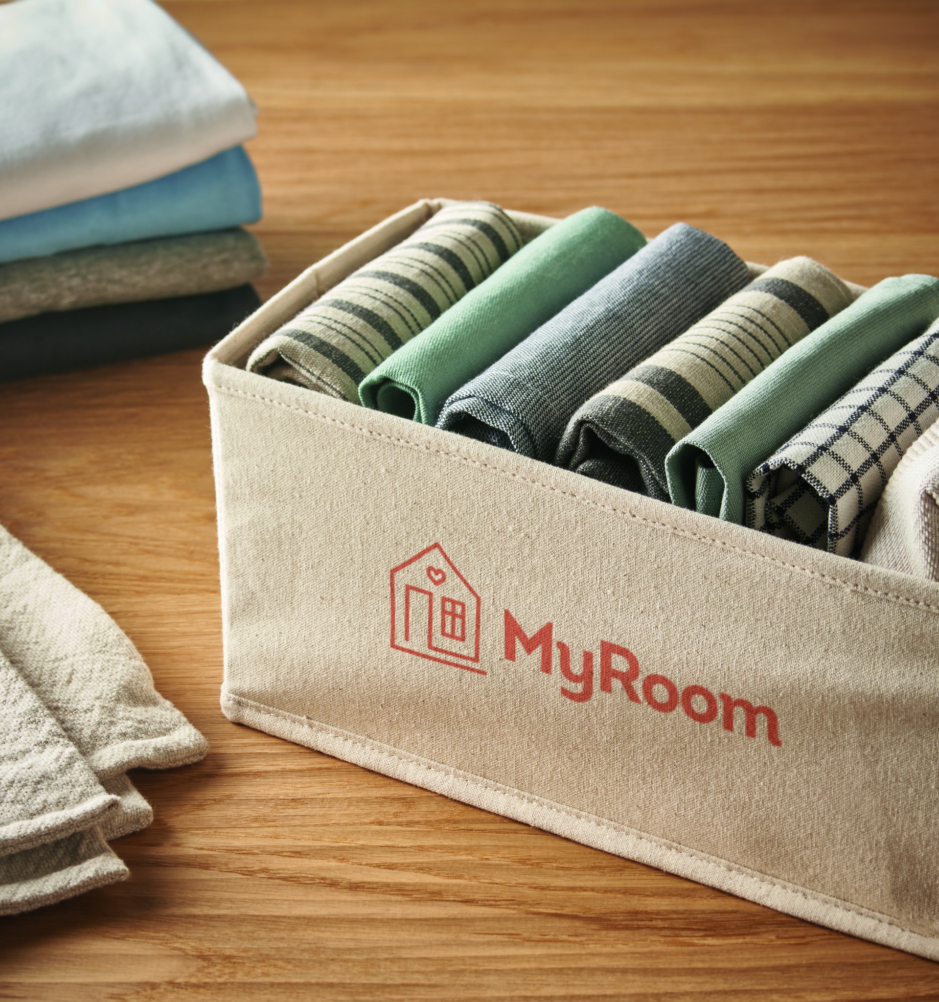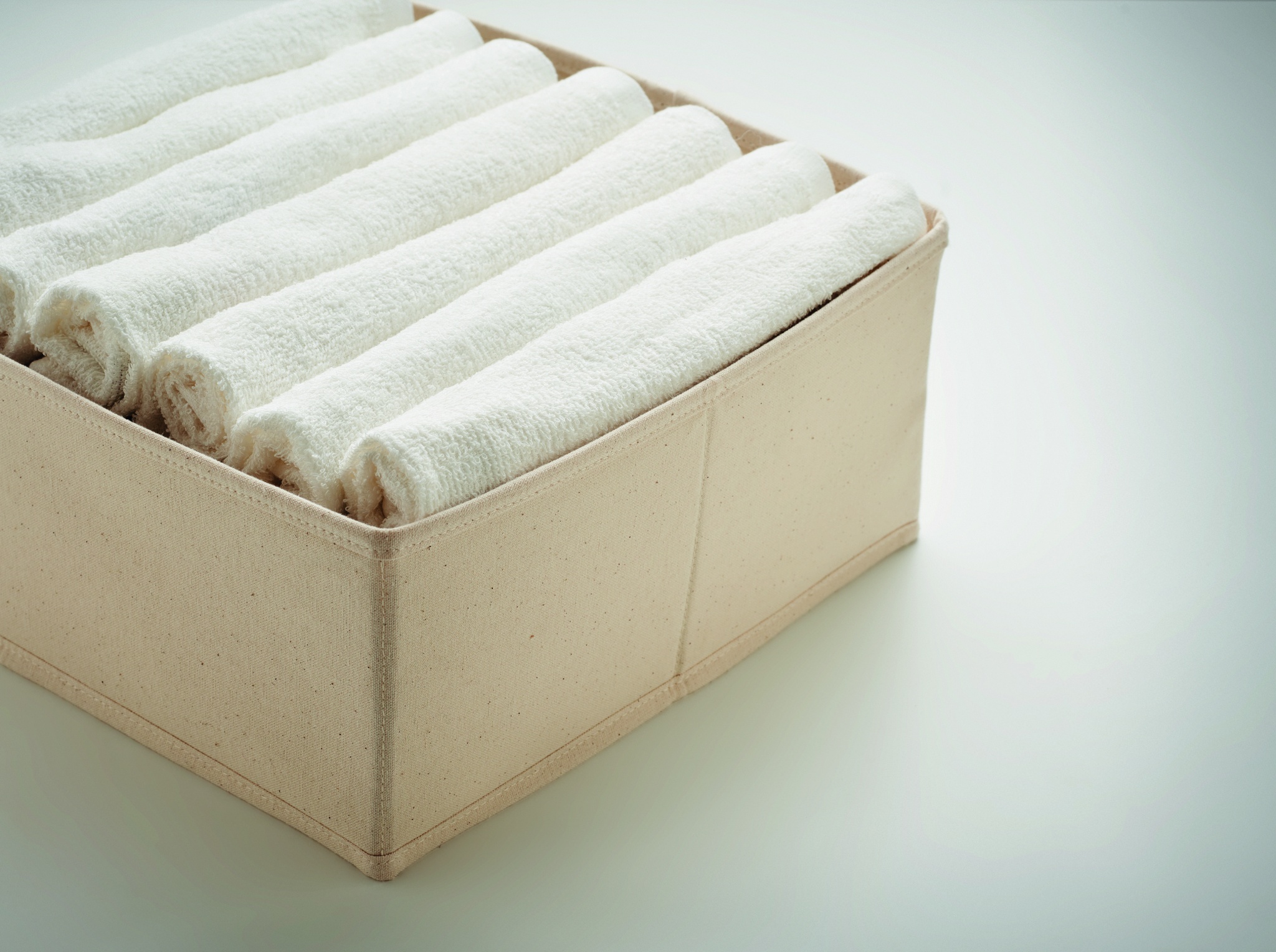 Suured kokkupandavad tarvikud või puuvillane hoiukarp (220 gr/m²). Pakutakse puuvillases (140 gr/m²) nööriga kotikeses.