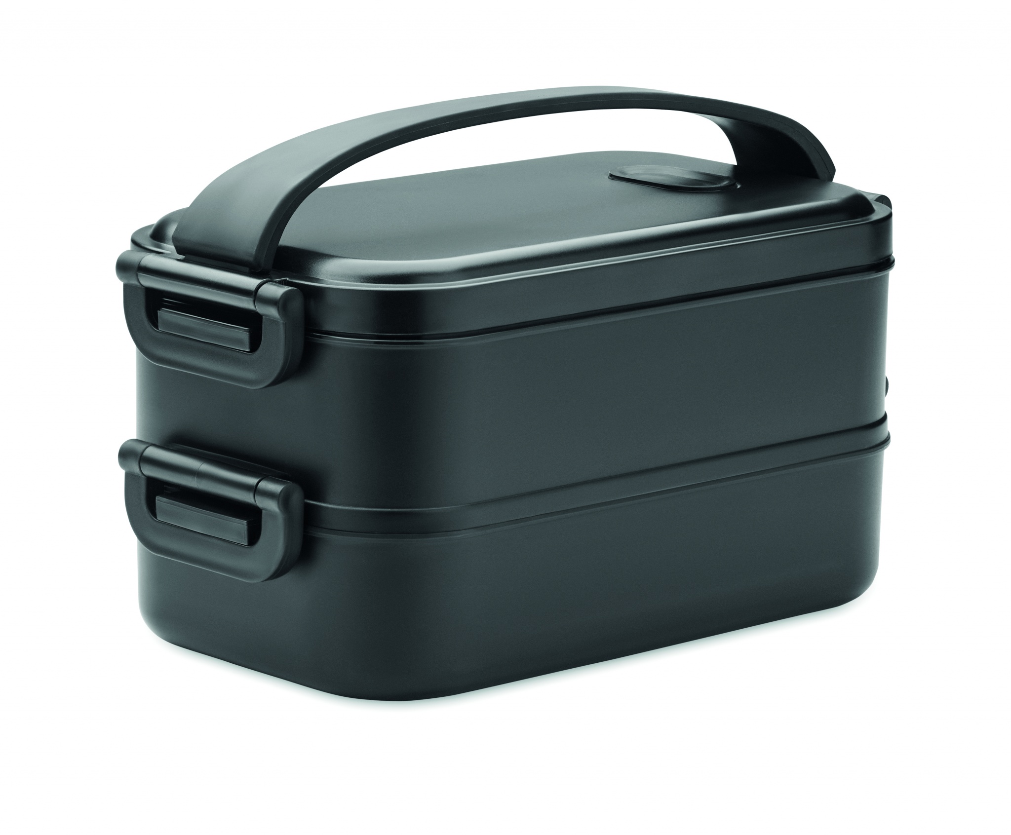 Taaskasutatud PP kahetasandiline lõunakarp koos külgpandlate ja õhukindla kaanega eemaldatava jagajaga. Mahutavus: 800 ml (2x).