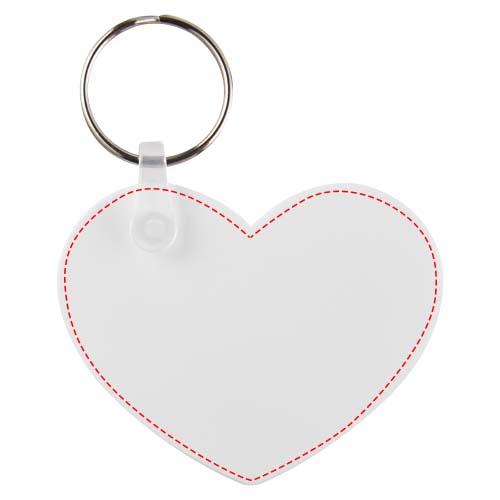 Valge südamekujuline võtmehoidja metallist poolitatud võtmehoidjaga. Metallist silmusrõngas pakub lamedat profiili, mis sobib ideaalselt postitamiseks.