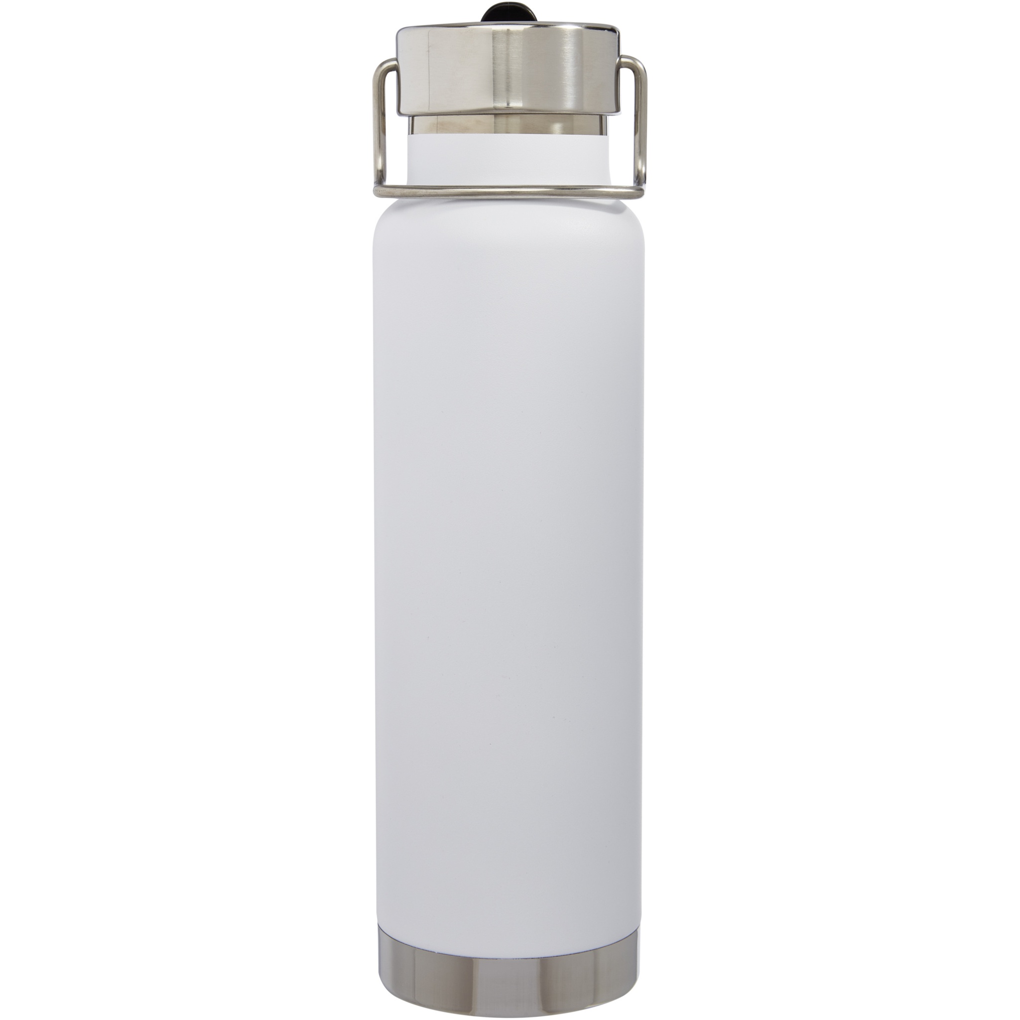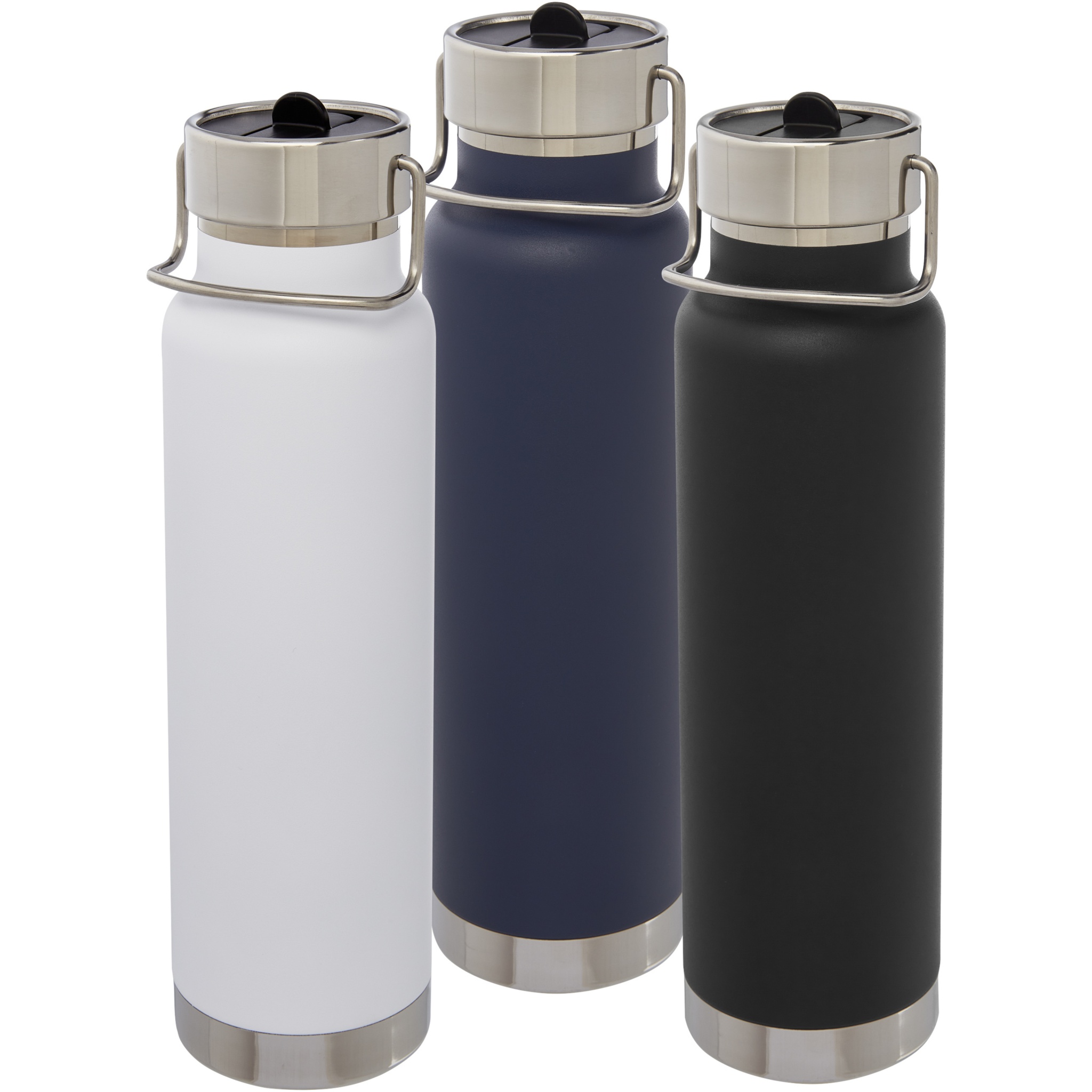 Vastupidav ja suur kahekordse seinaga roostevabast terasest vaakumkonstruktsioon vase isolatsiooniga, mis hoiab joogid kuumana või külmana mitu tundi. Konstruktsioon hoiab ära ka kondenseerumise pudeli välisküljel ning trendikas pulbervärvimine muudab selle eriti vastupidavaks. Roostevabast terasest keeratav lekkekindel kaas, millel on integreeritud kõrs ja vastupidav roostevabast terasest käeaas. Lai avaus lihtsaks täitmiseks, valamiseks ja puhastamiseks. BPA-vaba, testitud ja heaks kiidetud vastavalt Saksamaa toiduohutuse seadusandlusele (LFGB). Testitud ja heaks kiidetud ftalaatide sisalduse osas vastavalt REACH-määrustele. Ideaalne jääkuubikuteks. Maht on 750 ml. Soovitatav käsipesu. Esitatakse taaskasutatud papist kinkekarbis.