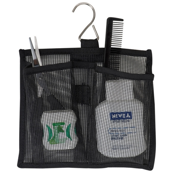 Meie tualettkoti soovitus! See on õige! Tugevast nailonist - sees on piisavalt ruumi, läbipaistev tõmblukuga sahtel, 5 aasaga veniv lint, 3 suurt võrgusahtlit ja 2 metallist konksuga võrgusahtlit, mille saab välja võtta takjakinnituse abil. duši all riputamine nt. šampoon või dušigeel. Kotil on 270-kraadine tõmblukk ja veel üks metallist konks selle riputamiseks. See on praktiline ja mugav! Trükime teie logo koti esiküljele.