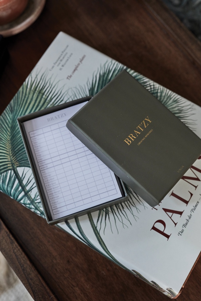 See on Yatzy luksuslikus pakendis! Kuldsete täringutega ja sama eksklusiivse pliiatsiga tõstame Yatzy Bratzyle. See mäng tarnitakse stiilses karbis, millele on trükitud kuldne tekst, mis muudab selle nii lõbusaks kinkimiseks kui ka kohvilaual mõnusa detailina kasutamiseks.