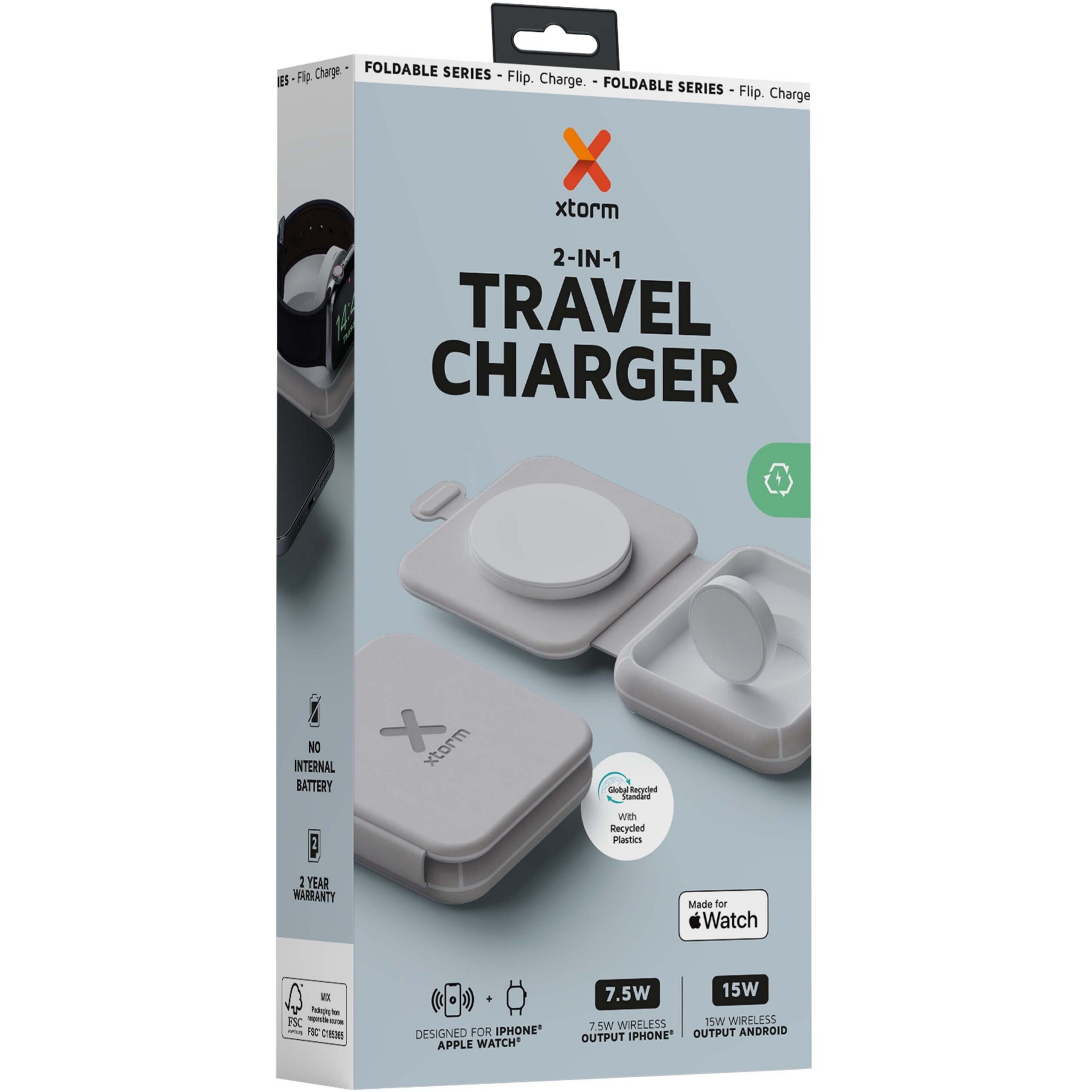 Xtorm XWF21 15W kokkupandav 2-in-1 juhtmevaba reisilaadija, Hall