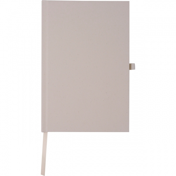 A5-kokoinen muistikirja, jonka kansi on valmistettu kookospähkinänkuorista ja jossa on 160 viivoitettua sivua kierrätyspaperista. Muistikirjassa on myös kirjanmerkki ja kynälenkki. Logosi on painettu kannen ulkopuolelle.