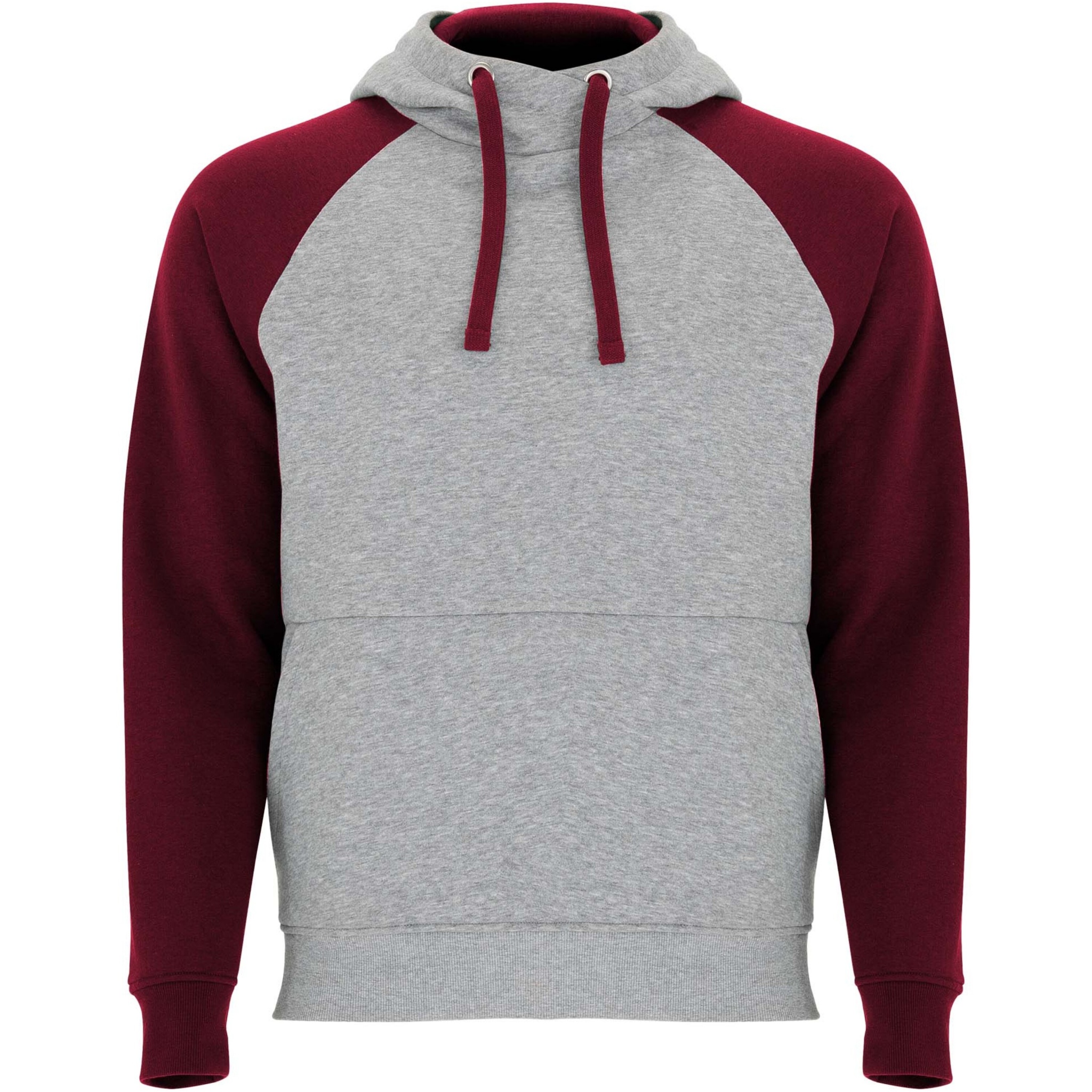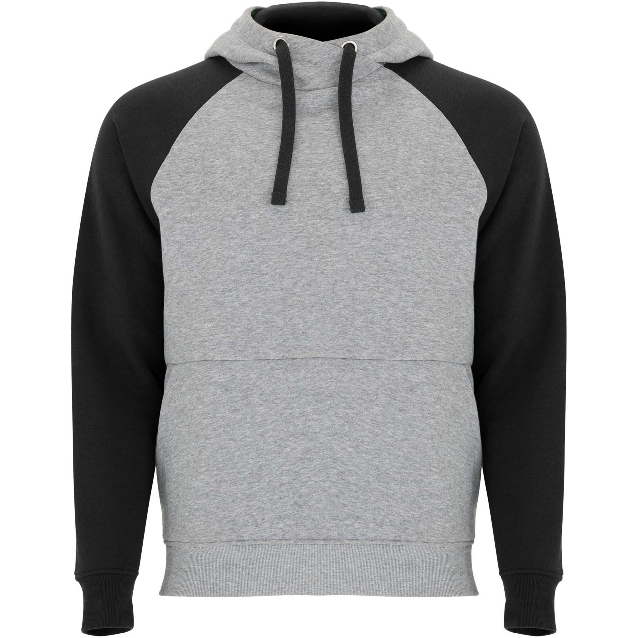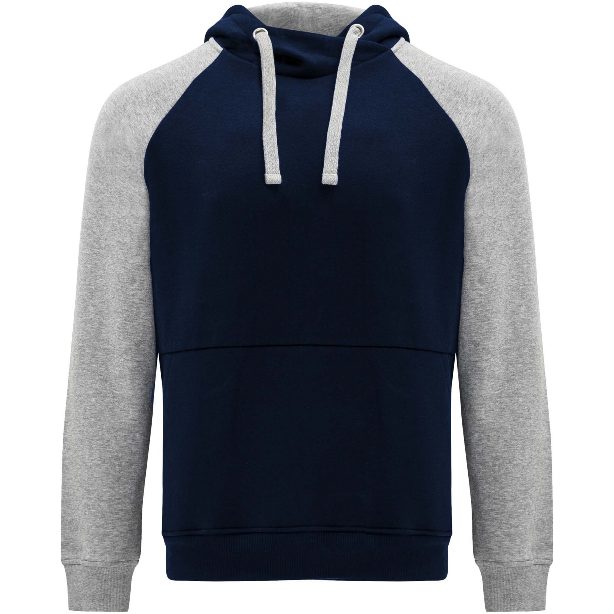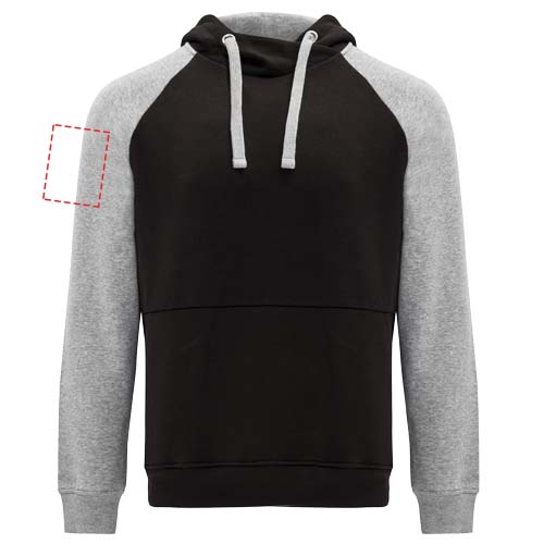 Kaksivärinen unisex-huppari. Hupussa ristikkäinen pääntie ja metallilenkit. Kontrastivärinen hupun sisäosa, kiristysnyöri ja raglan-hihat. Kengurutasku. Hihansuut ja helma 1x1-elastaanijoustinneuletta. Irrotettava etiketti.