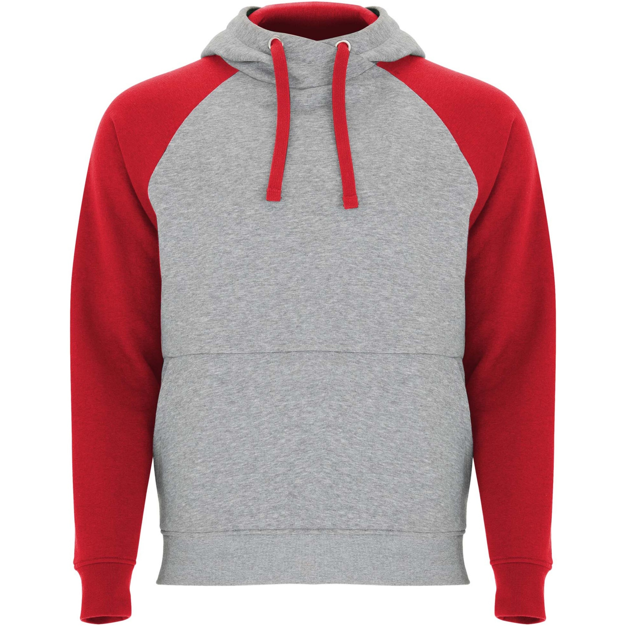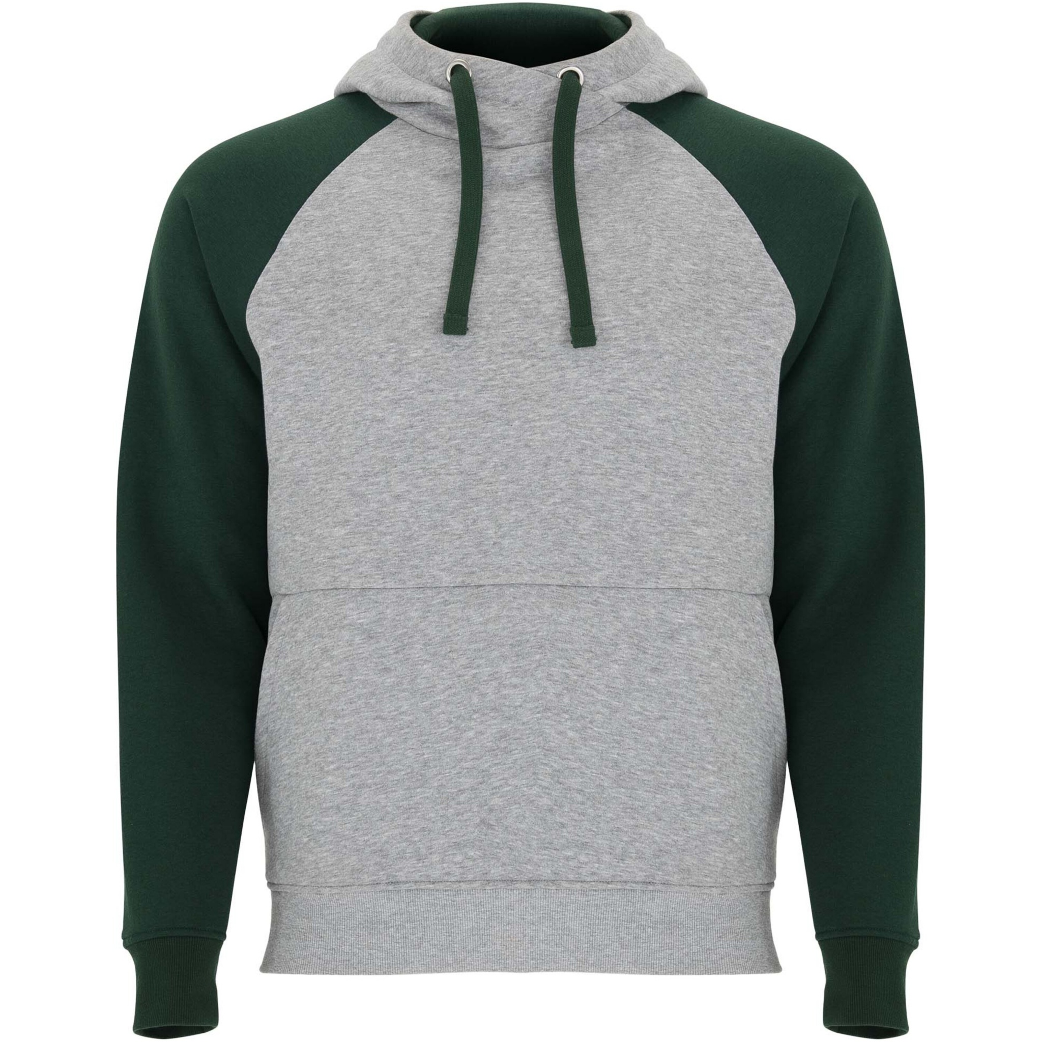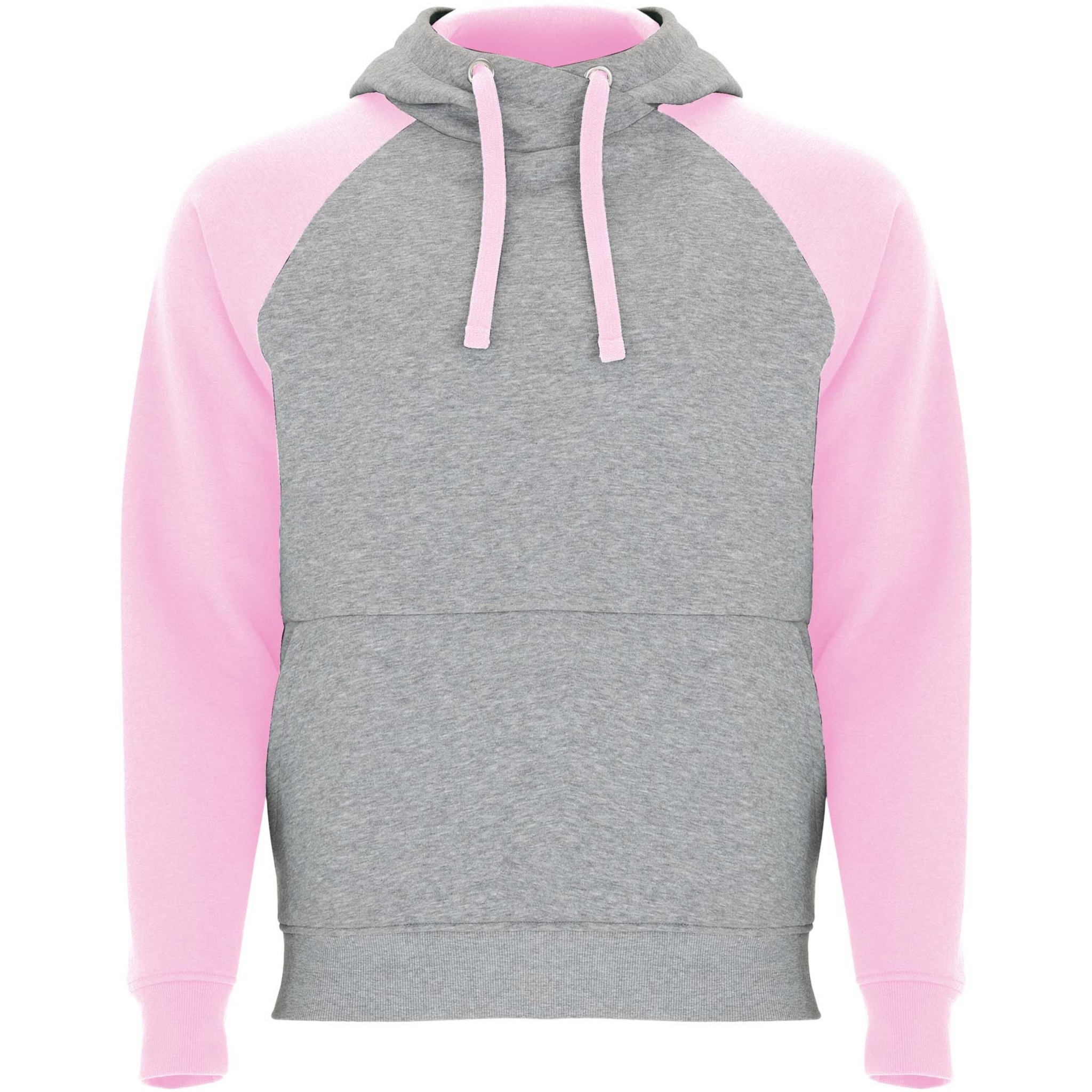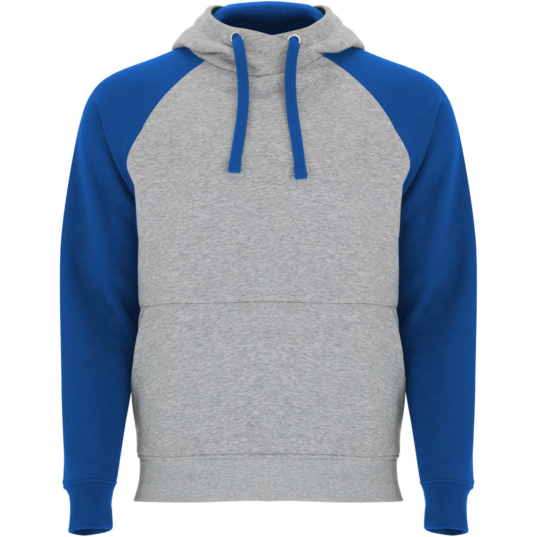 Kaksivärinen unisex-huppari. Hupussa ristikkäinen pääntie ja metallilenkit. Kontrastivärinen hupun sisäosa, kiristysnyöri ja raglan-hihat. Kengurutasku. Hihansuut ja helma 1x1-elastaanijoustinneuletta. Irrotettava etiketti.