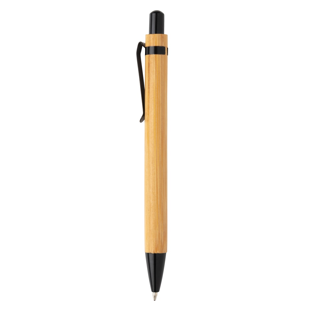 Bambuvartinen kuulakärkikynä, metallinen rengasnipistin, metallikärki.