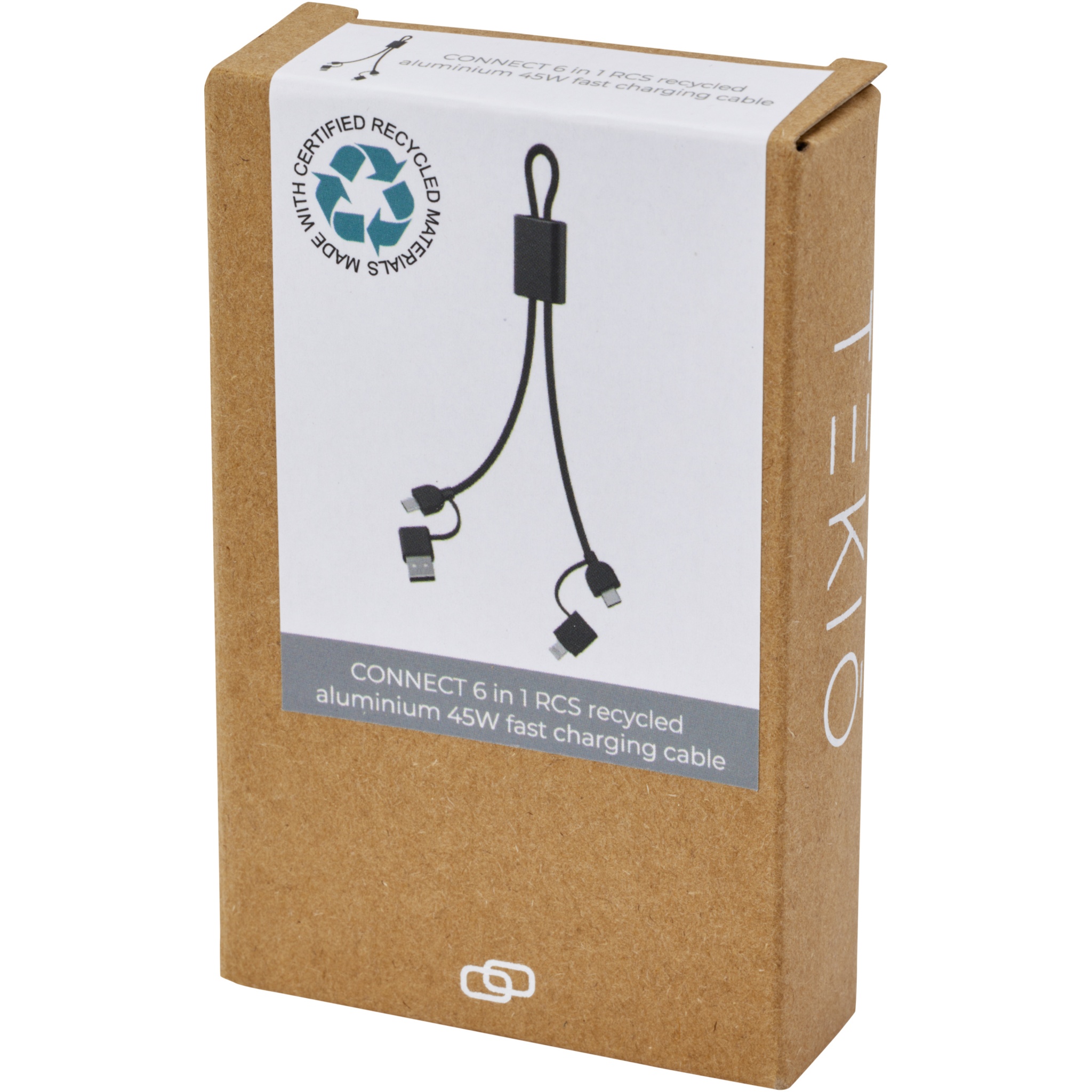 Logo trade liikelahjat mainoslahjat kuva: Connect 6-in-1 pikalataus- ja datasiirtokaapeli 45 W RCS-kierrätetystä alumiinista