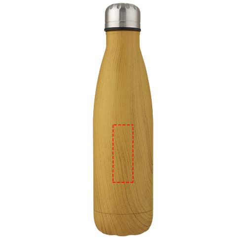 Tyhjiöeristetty, ruostumaton teräspullo ikonisella muotoilulla ja puujäljitelmäpinnalla. Eristetty 18/8 ruostumaton teräs pitää juoman kuumana tai kylmänä useita tunteja. BPA-vapaa, testattu ja hyväksytty Saksan elintarviketurvallisuslainsäädännön (LFGB) mukaisesti. Testattu ja hyväksytty ftalaattipitoisuuden osalta REACH-asetusten mukaisesti. Tämä tyylikkään näköinen vesipullo, joka mahtuu useimpiin kuppipidikkeisiin, on täydellinen mainostuote. Tilavuus on 500 ml. Suositellaan pestäväksi käsin. Toimitetaan kierrätetystä kartongista valmistetussa lahjapakkauksessa.