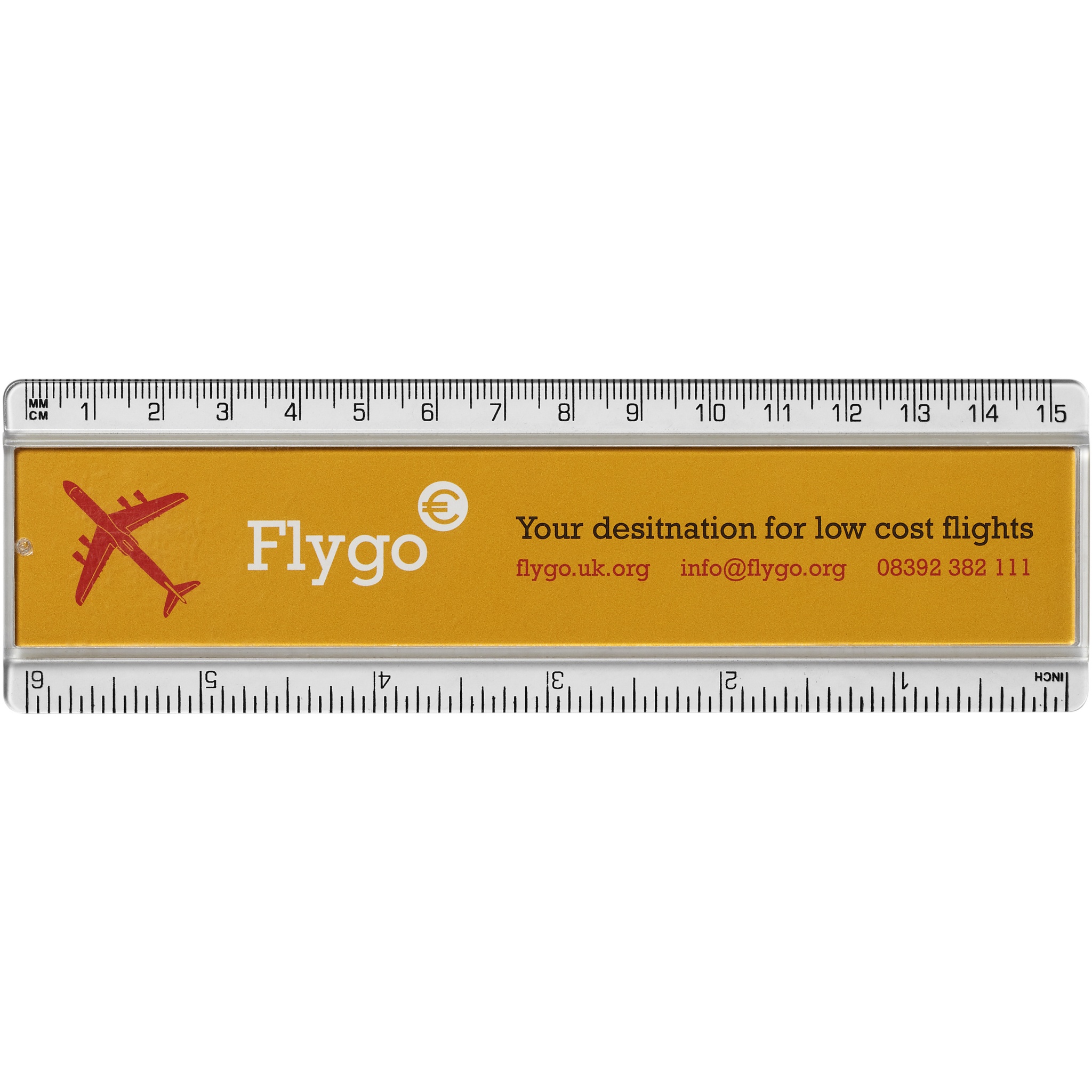 Logotrade mainoslahja tuotekuva: Ellison-viivain paperi-insertillä, 15 cm, muovinen