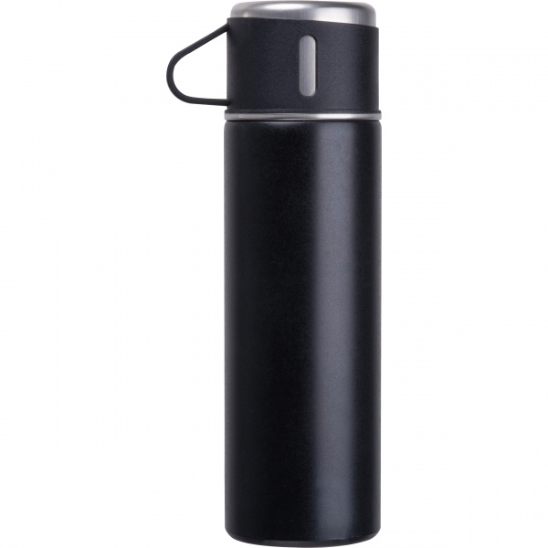 Eristetty pullosetti, joka koostuu kaksiseinäisestä ruostumattomasta teräksestä valmistetusta eristetystä pullosta (400 ml), jossa on pikalukituskorkki, ja kolmesta ruostumattomasta teräksestä valmistetusta juomamukista (120 ml), joissa on muovipinnoite. Logosi on kaiverrettu pulloon laserkaiverruksella.