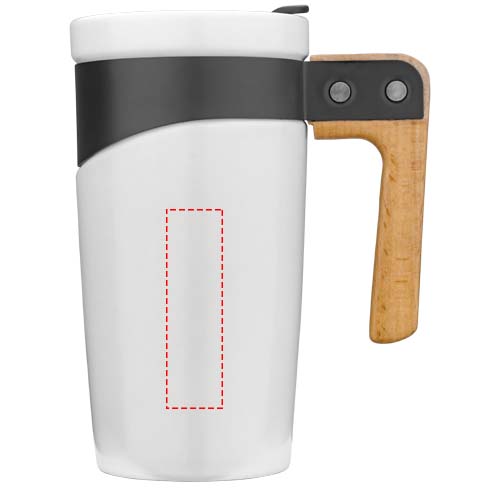 Hauska keraaminen muki. Tyylikäs mattapinta ja puinen kahva, mustat teräksiset yksityiskohdat. Push-on, liukuva korkki. Kapasiteetti 475 ml. Lahjapakkaus.