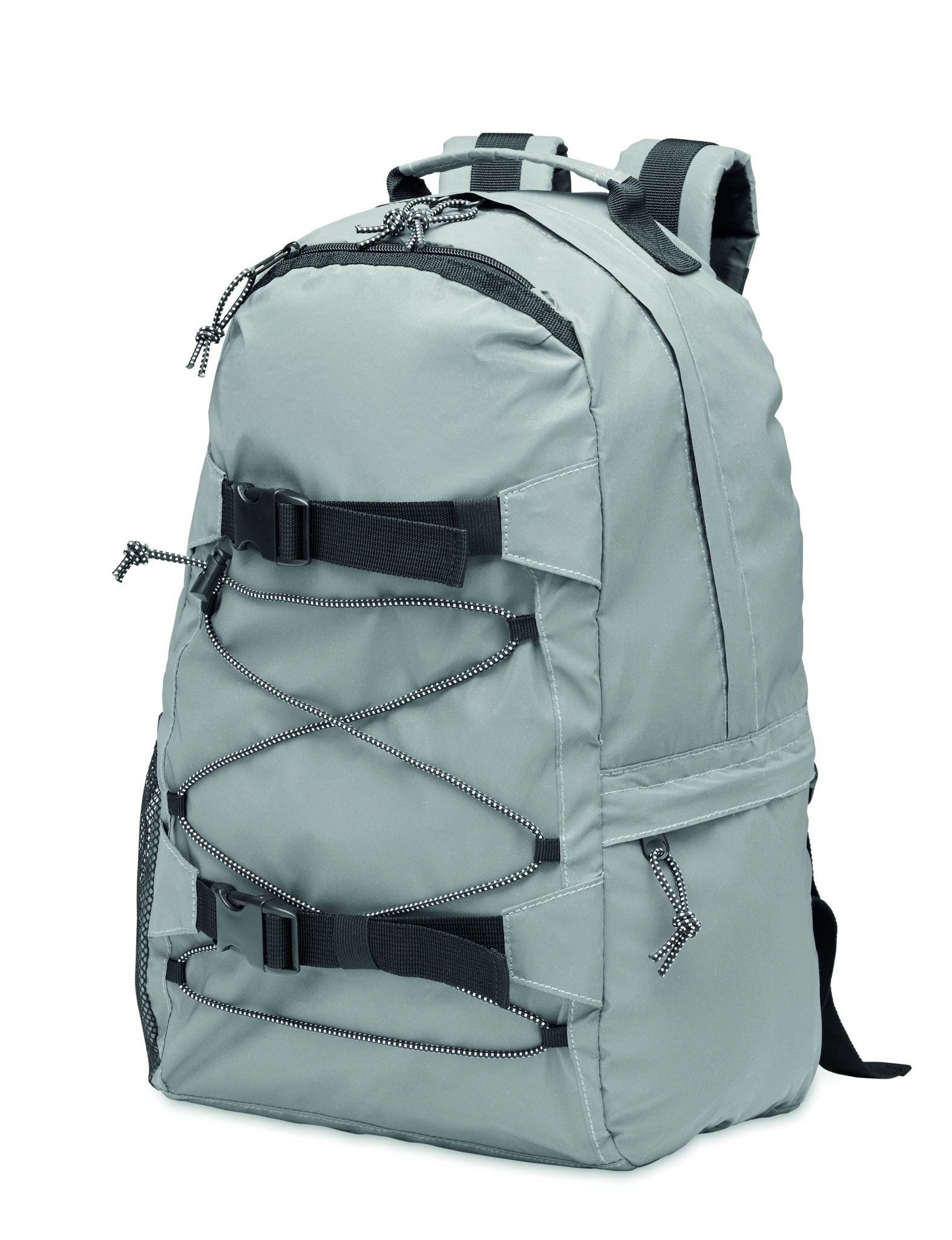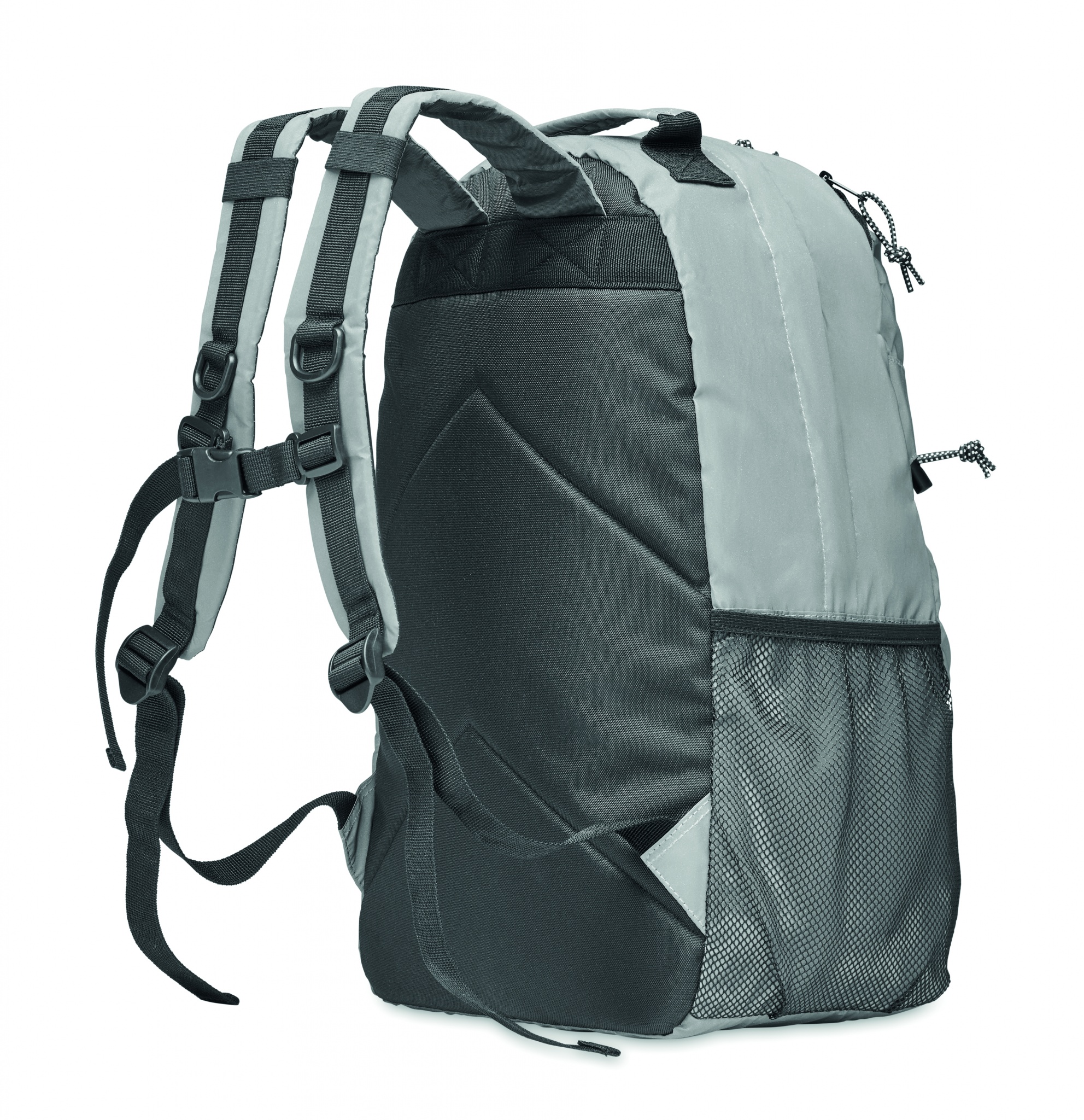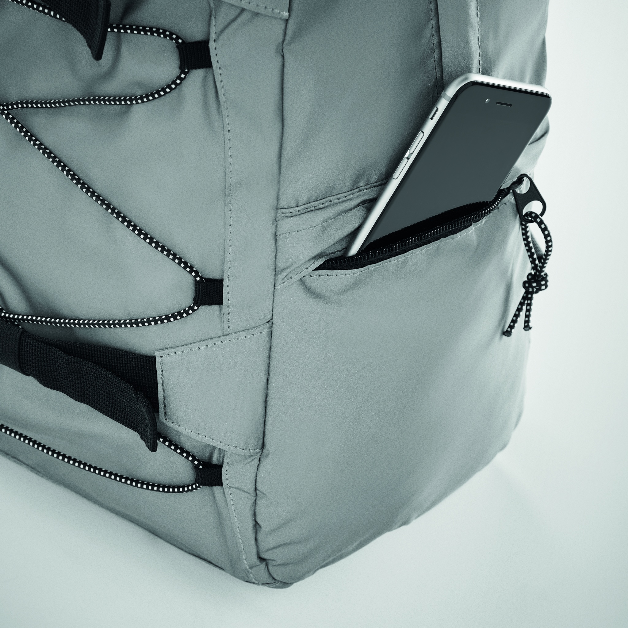 Reppu heijastavaa 190T polyesteriä, jossa on naru edessä. Pehmustettu selkä, hihnat ja pohja. Siinä on lokero 15'' kannettavalle tietokoneelle. Toisella puolella verkkotasku ja toisella puolella vetoketjullinen tasku.
