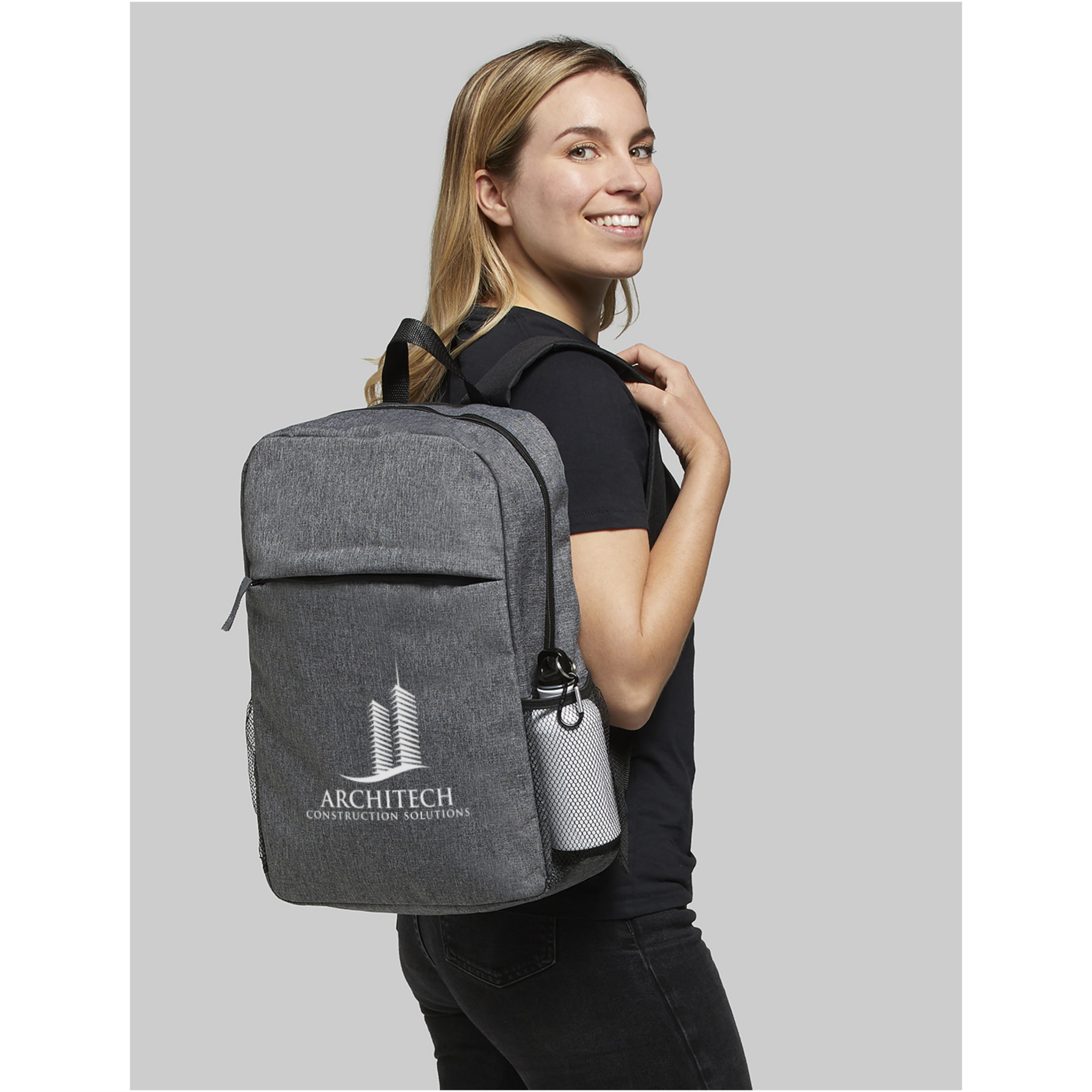 Avara vetoketjullinen päälokero ja 15” tasku kannettavalle tietokoneelle. Vetoketjullinen etulokero antaa nopean pääsyn mobiililaitteisiin. Mukana kätevät pehmustetut olkahihnat, kantokahva ja verkkotasku vesipullolle. Varsinaisen tuotteen väri saattaa vaihdella hieman kangasvärien, kudonnan ja painatusten vuoksi. Tilavuus: 18 l.