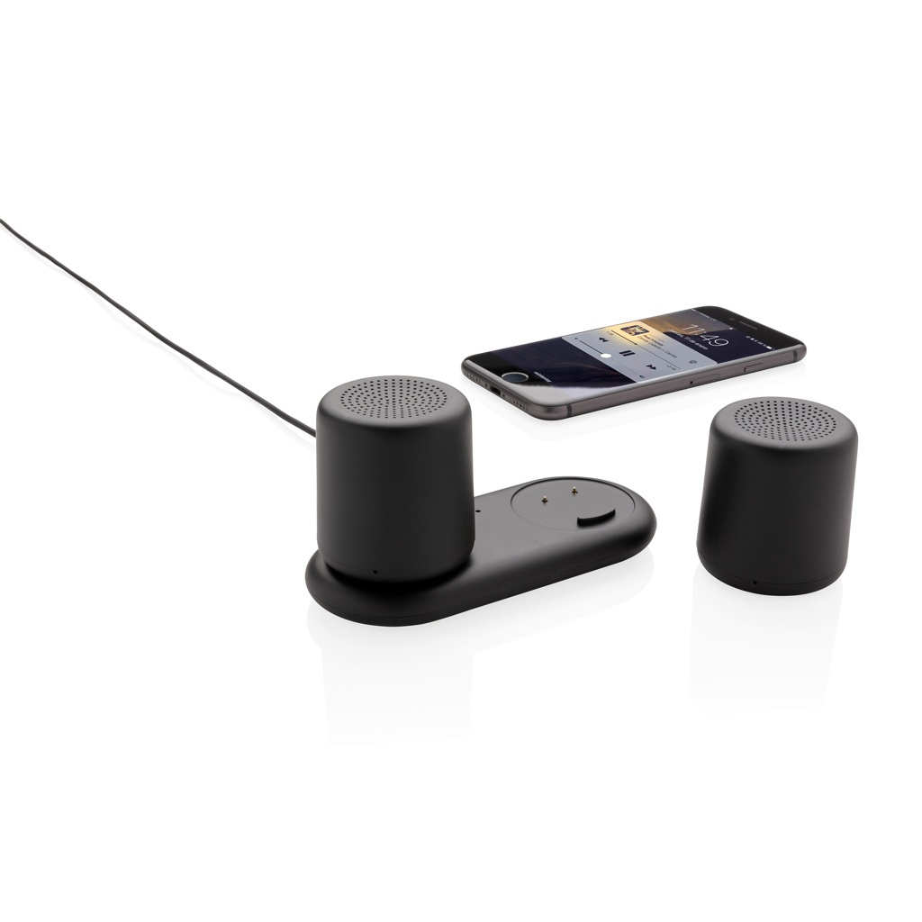 Logotrade liikelahjat mainoslahjat tuotekuva: Induktioladattava kaksoiskaiutin