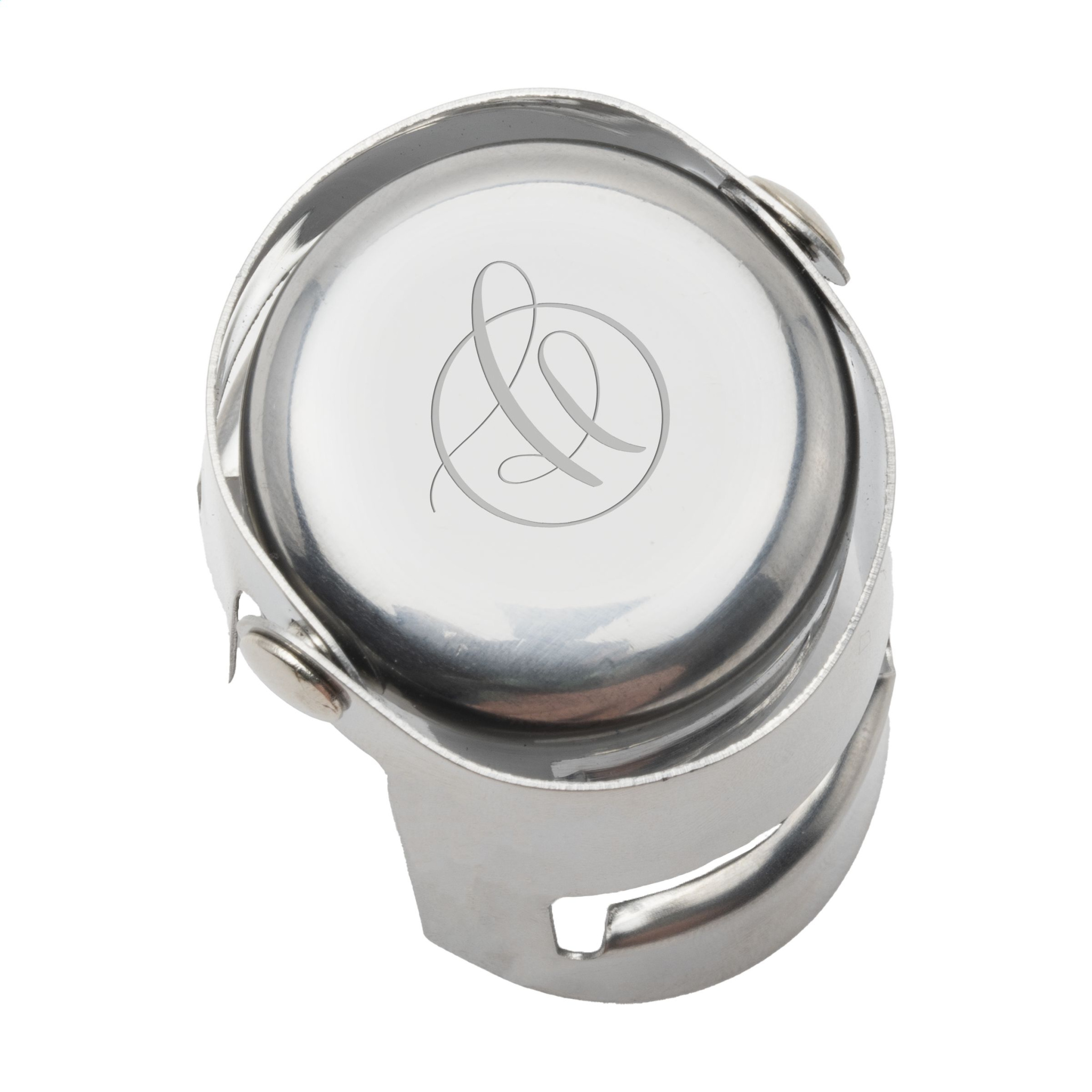 Tyylikäs ruostumattomasta teräksestä valmistettu pullonkorkki samppanjapullojen ja korkilla varustettujen viinipullojen ilmatiiviiseen sulkemiseen.