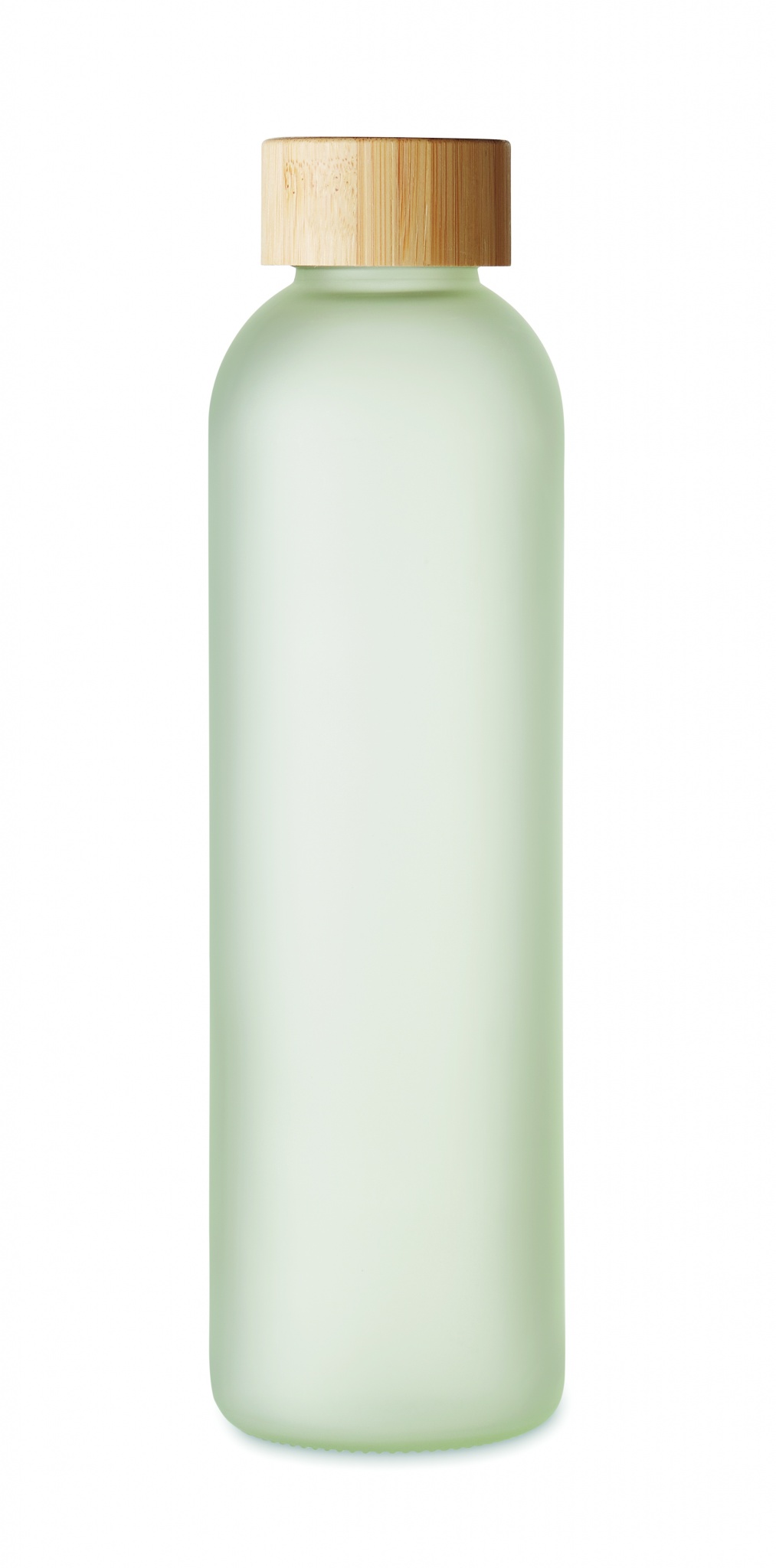 Lasinen juomapullo, jossa on erityinen pinnoite sublimaatiota varten sekä bambukorkki. Tilavuus 650 ml.