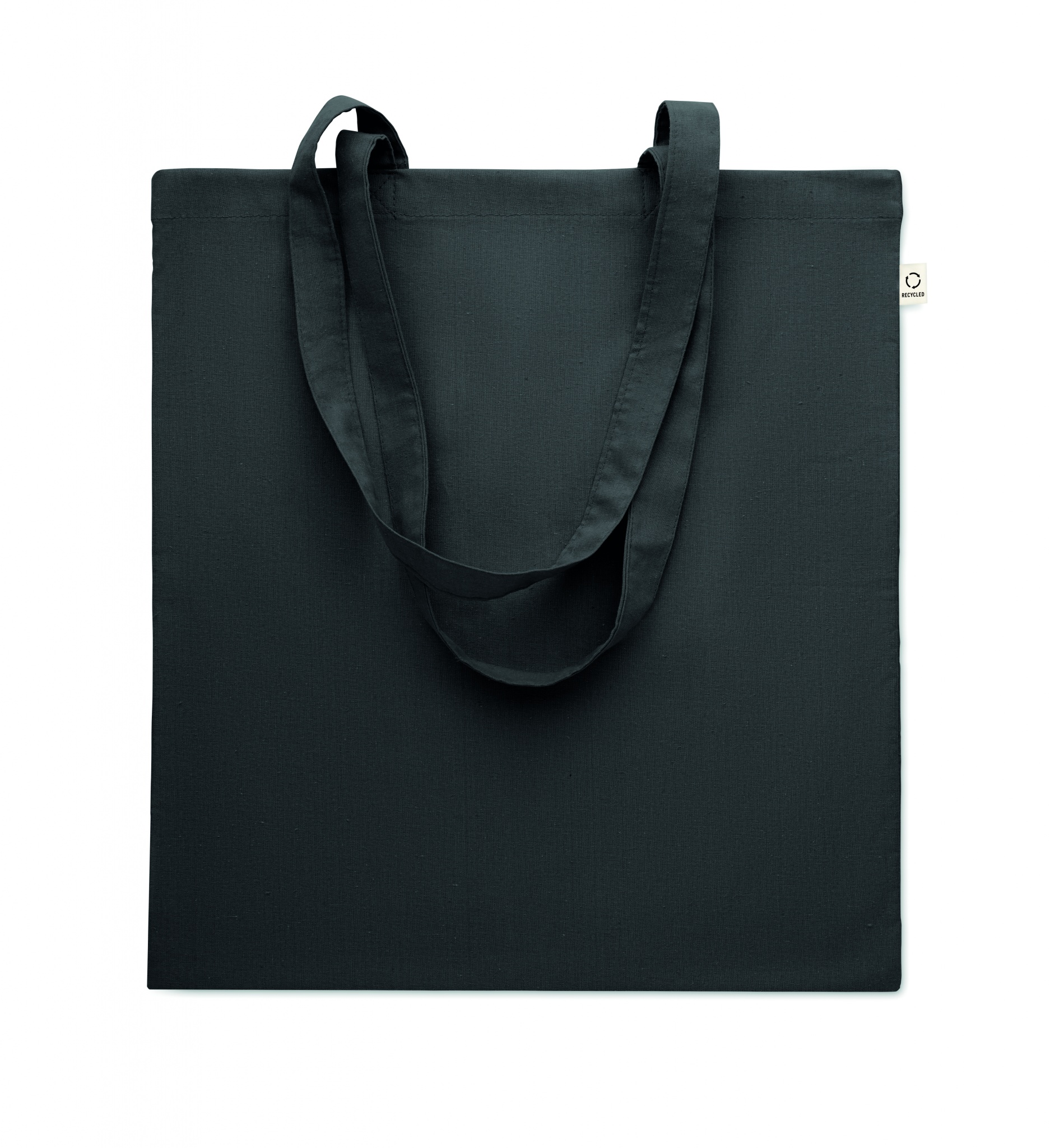 Kierrätetty ostoskassi (70 % kierrätettyä puuvillaa ja 30 % RPET) pitkällä kahvalla. 140 g/m².