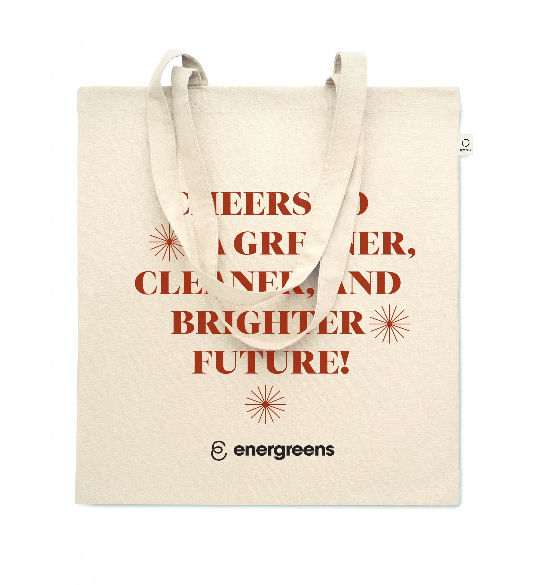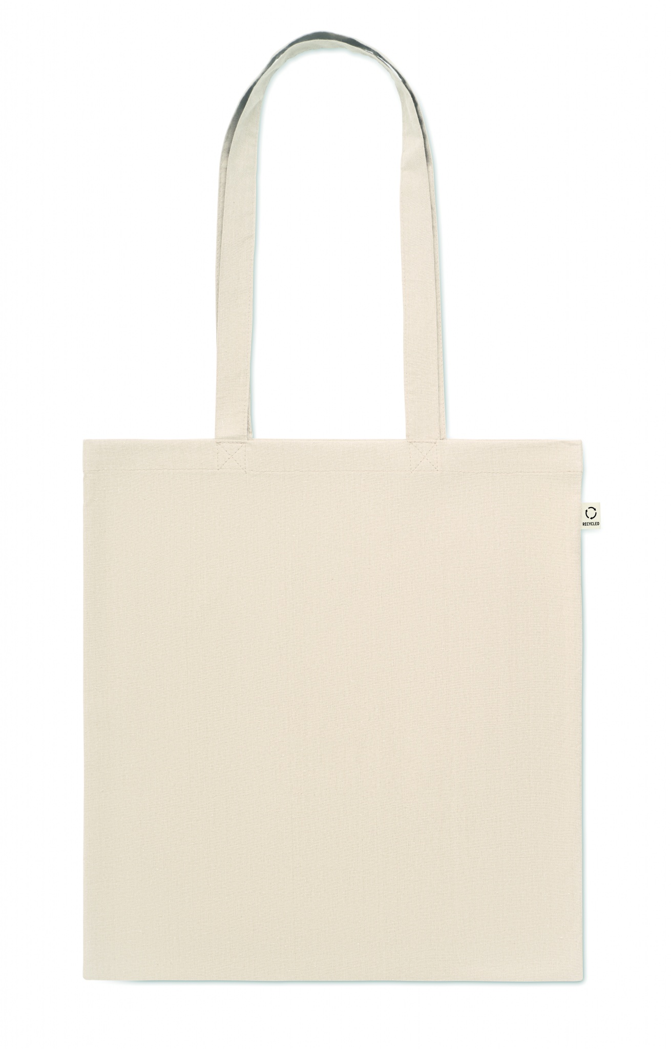 Kierrätetty ostoskassi (70 % kierrätettyä puuvillaa ja 30 % RPET) pitkällä kahvalla. 140 g/m².