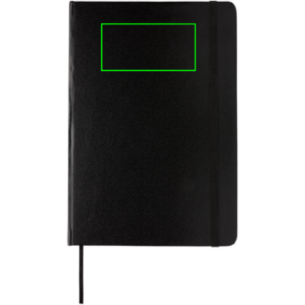 Viivallinen A5 kovakantinen muistikirja elastisella sulkijalla ja sivunjakajalla. 144 sivua 70g/m2. Kermanväriset sivut.