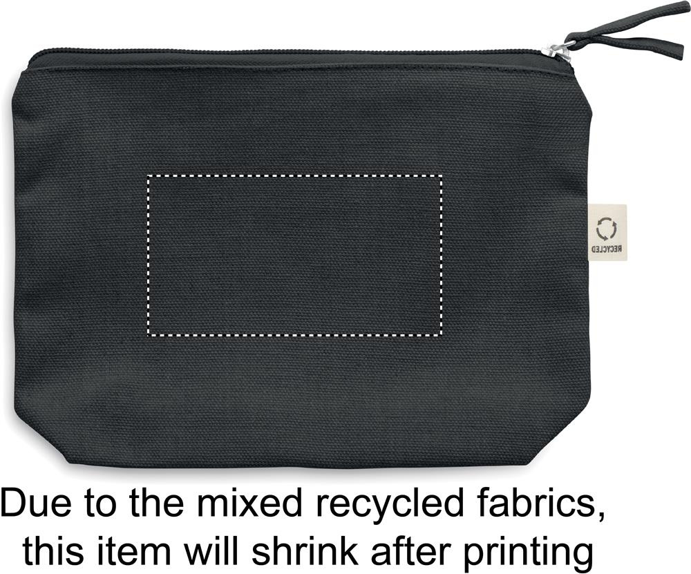 Kosmetiikkalaukku kierrätyskankaasta (70 % kierrätettyä puuvillaa ja 30 % RPET-polyesteriä) yhteensopivalla vetoketjunvetimellä. 320 gr/m². Tuote voi kutistua painatuksesta johtuen.