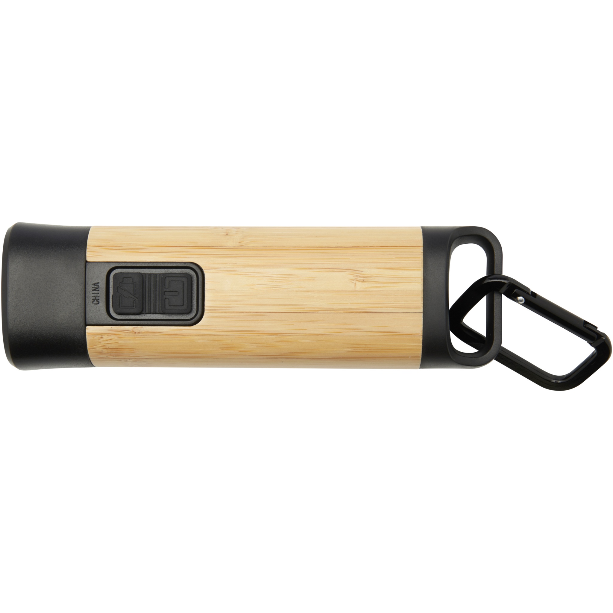 Kuma bambusta / RCS-kierrätetystä muovista valmistettu taskulamppu karabiinihaalla