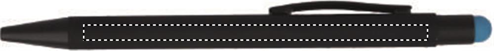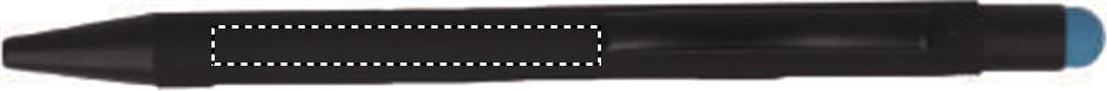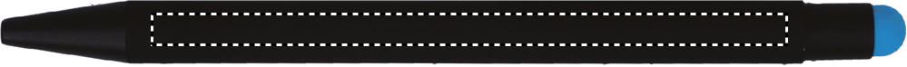 Alumiininen kuulakärkikynä kosketusnäyttöpäällä ja sinisellä musteella. Kaiverruksen lopputulos rungossa vastaa kosketusnäyttöpään väriä.