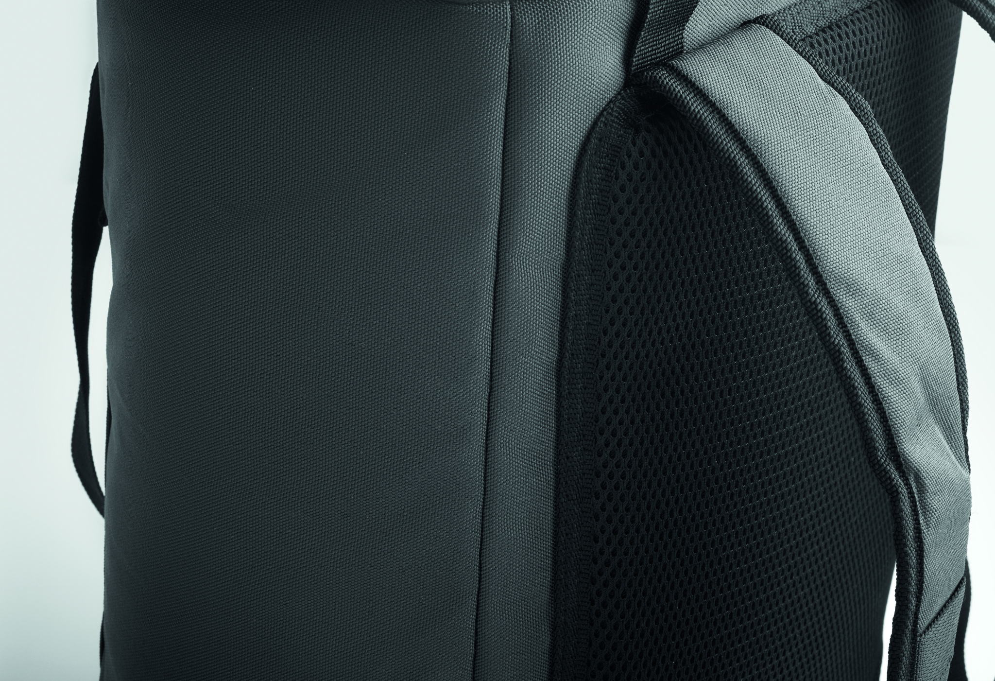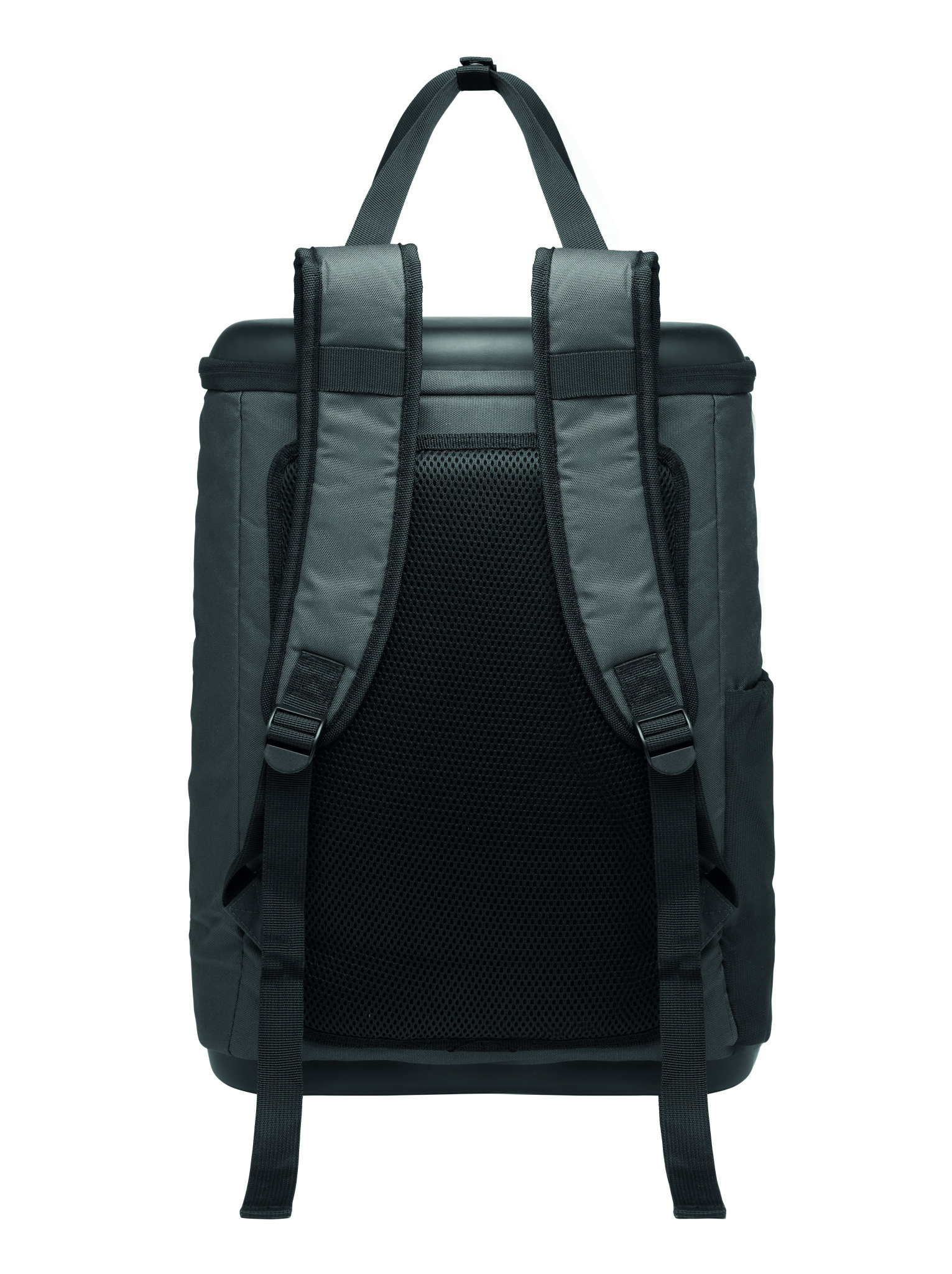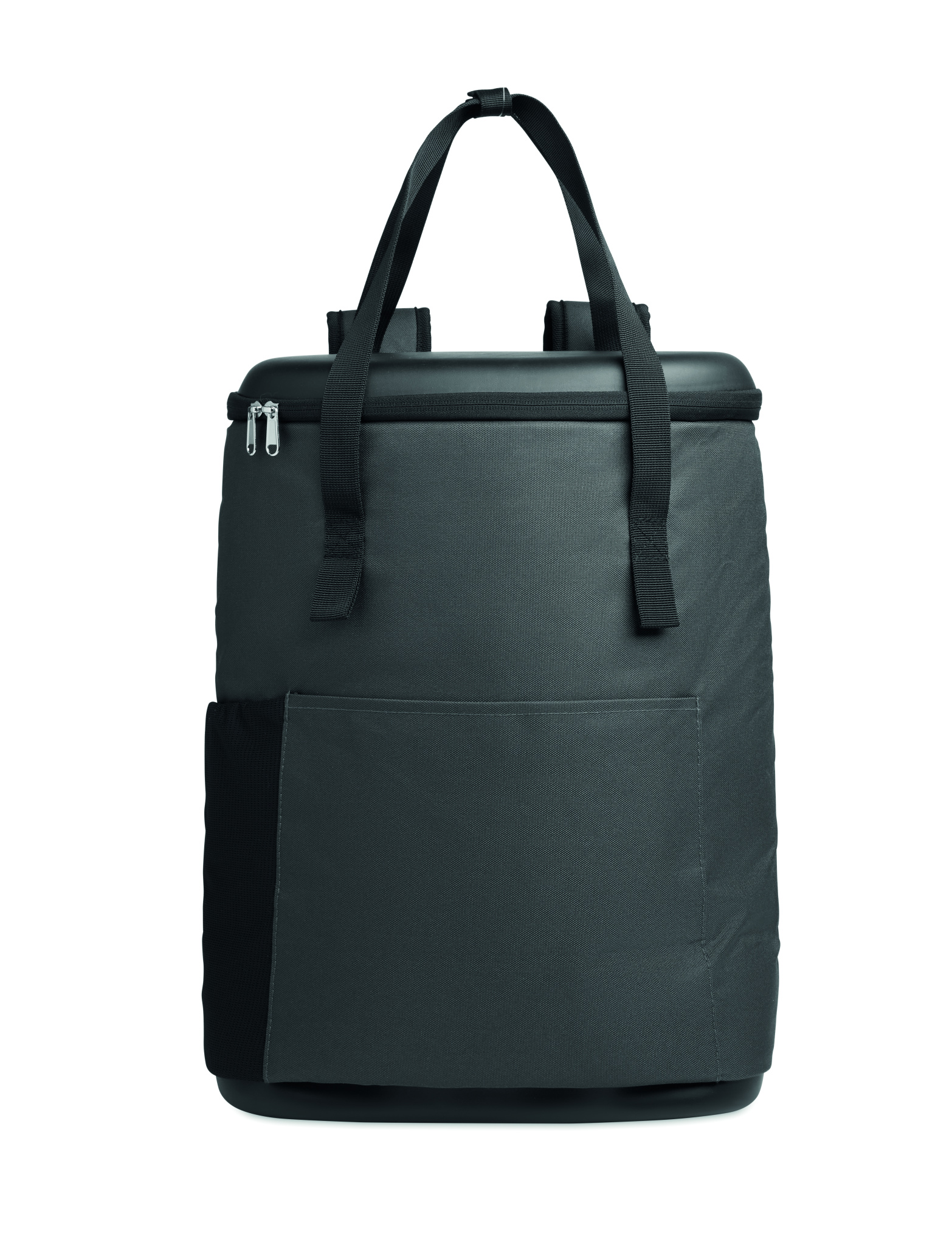 Kylmäreppu vettä hylkivästä 600D RPETistä, PE-vaahdolla ja PEVA-vuorilla. Muotolippa, pehmustettu verkkoselkä, etutasku vetoketjulla ja sivuilla sandwich-taskut. Tilavuus 20 L.