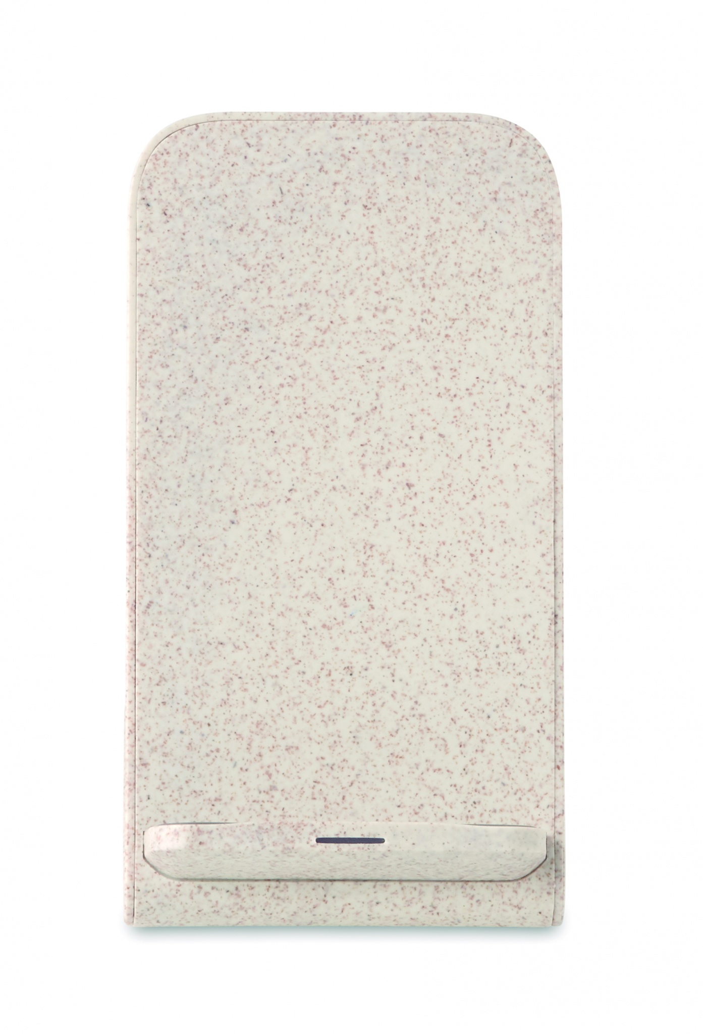 Langaton laturi/ puhelinalusta, valmistettu 35% venhän oljesta ja 65% ABS. Lähtövirta DC5V/2A (10W) aseta älypuhelin alustalle aloittaaksesi latauksen. Yhteensopiva android, iphone8, X ja uusimpien laitteiden kanssa.