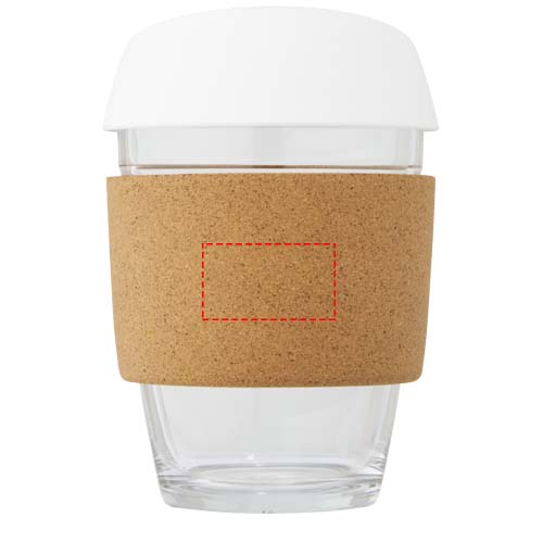 Yksiseinäinen borosilikaattikahvimuki sileällä korkkigripillä. Sisältää irrotettavan silikonikannen, joka on turvallinen elintarvikekäytössä. Juoma-astia on 100 %:sti kestävää borosilikaattilasia, mikä pitää juoman tuoreena, eikä se sisällä haitallisia kemikaaleja. Testattu ja hyväksytty elintarviketurvallisuslainsäädännön (LFGB) mukaisesti, ja ftalaattipitoisuus on testattu REACH-asetusten mukaisesti. Sopii useimpien kahvinkoneiden alle. Tilavuus 360 ml. Kahvimuki voidaan pestä astianpesukoneessa, kunhan korkkigrippi irroitetaan ensin. Toimitetaan kierrätetystä kartongista valmistetussa lahjapakkauksessa.