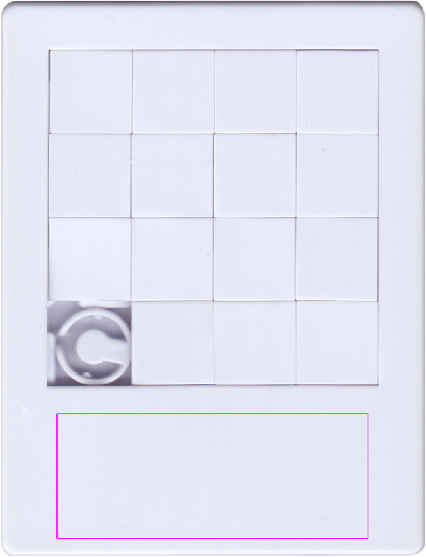 Muovinen liukuva pulmapeli 15 palalla ja tulpalla. Painamme logosi kaikkialle digipainatuksella.