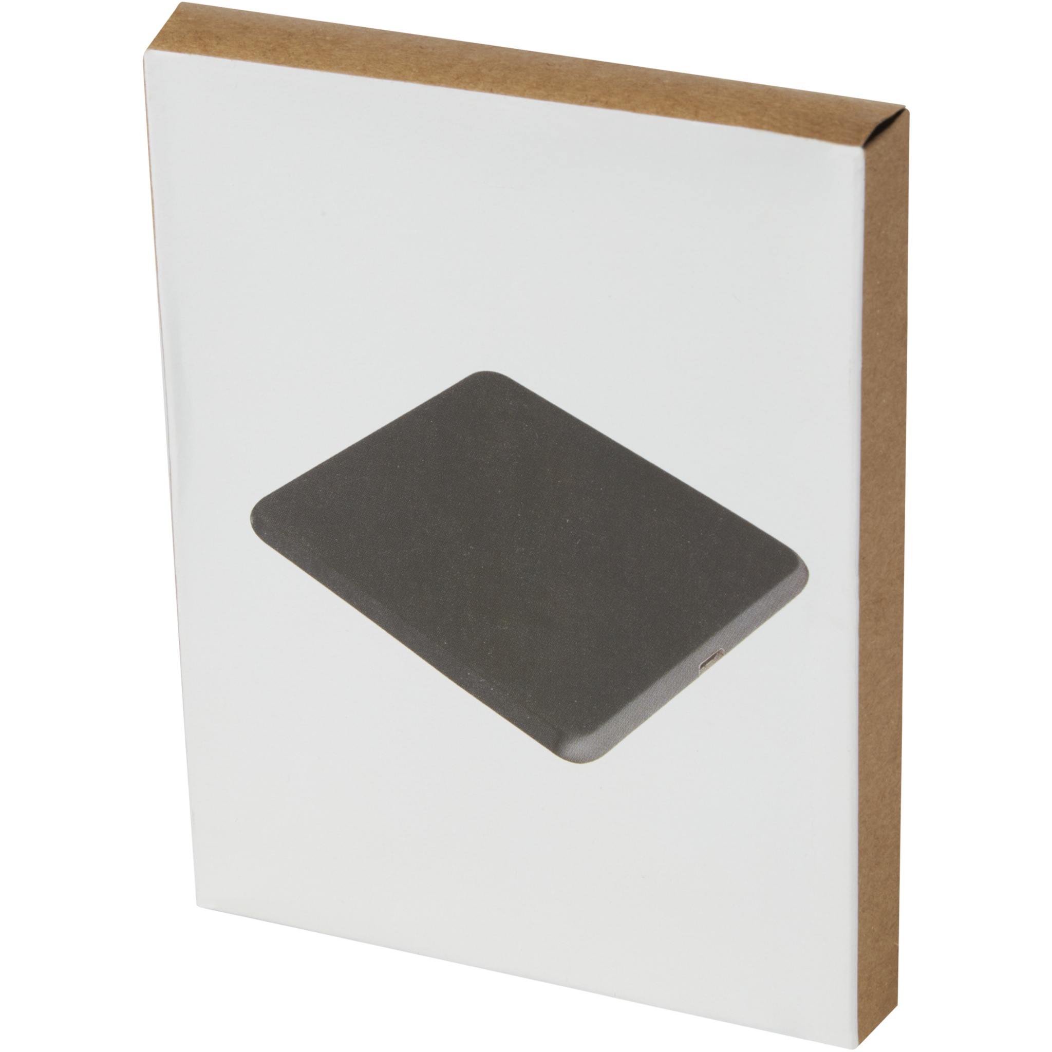 Langaton latausalusta, joka on valmistettu kierrätetystä ABS-muovista. Latausalusta liitetään tietokoneeseen tai kannettavaan tietokoneeseen, ja se lataa sen päälle asetettua laitetta. 10 W:n (maksimi) langaton teho mahdollistaa nopean latauksen. Yhteensopiva kaikkien Qi-laitteiden kanssa (iPhone 8 tai uudempi ja Android-laitteet, jotka tukevat langatonta latausta). Toimitetaan lahjapakkauksessa, joka sisältää käyttöohjeet (molemmat kestävistä materiaaleista).