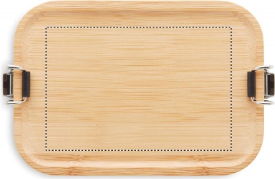 Ruostumattomasta teräksestä valmistettu 750 ml lounasrasia, bambu kannella. Luonnollisen materiaalin (bambu) vuoksi, tuotteiden värissä/ koossa saattaa olla erinäisyyksiä ja tämä voi vaikuttaa painatuksen lopputulokseen.