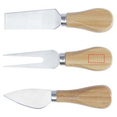 Bambusta valmistettu juustontarjoilusarja, jossa on juustotarjotin (30 x 20,2 x 7,6 cm), 2 juustoveistä (12,5 x 2,5 cm ja 12,5 x 2,7 cm) ja juustohaarukka (13,5 x 2,4 cm). Juustotarjottimen sivulla on magneettinauha juustovälineiden kiinnittämiseen, jotta voit voit tarjoilla juustoja tyylillä. Tuotteessa käytetty bambu on hankittu ja valmistettu kestävän kehityksen standardien mukaisesti.